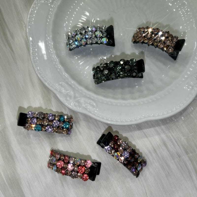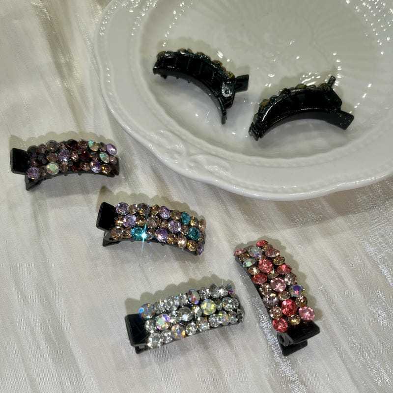 한국 같은 고급 라인스톤 헤어핀 덕빌 클립 여성용 프런트 헤드 뱅 클립 섬세한 작은 사이드 클립 헤어핀 클립 헤드웨어