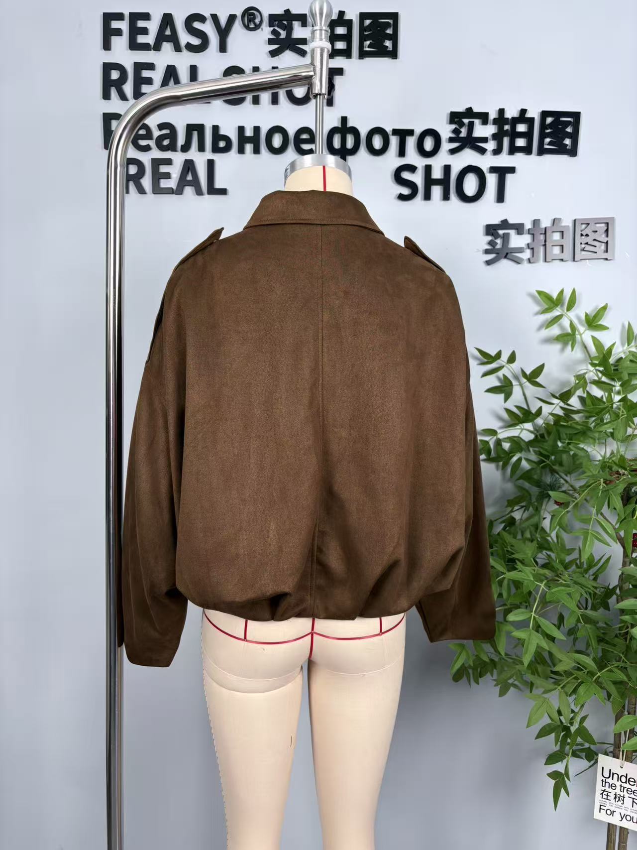 알리익스프레스 해외 도매 유럽 및 미국 패션 파일럿 스웨이드 재킷 배트 슬리브 지퍼 캐주얼 상의