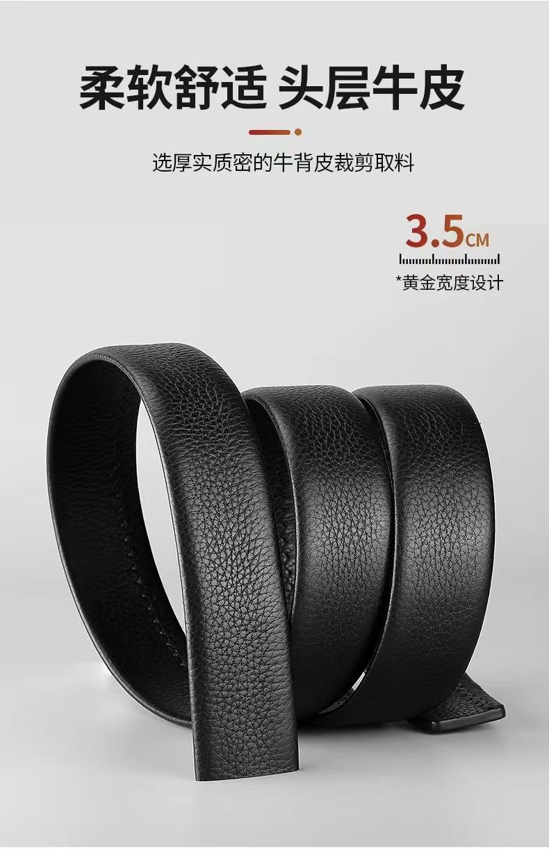 벨트 남성용 정품 가죽 헤드리스 자동 버클 1층 소가죽 순수 벨트 하이 엔드 비즈니스 버클리스 청소년 바지 벨트