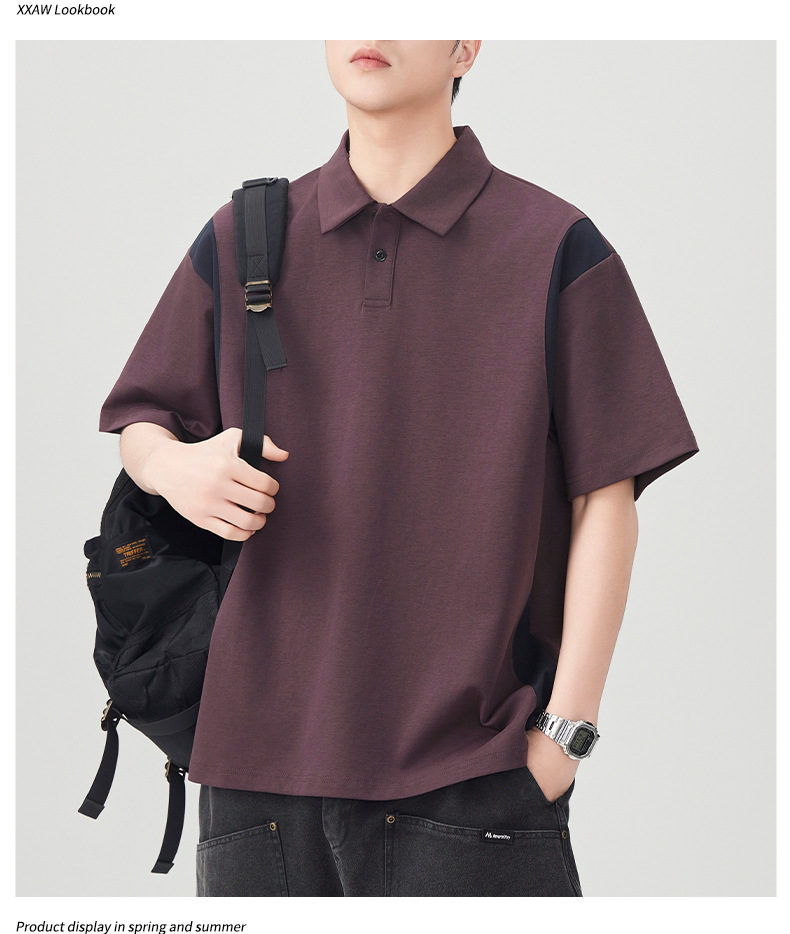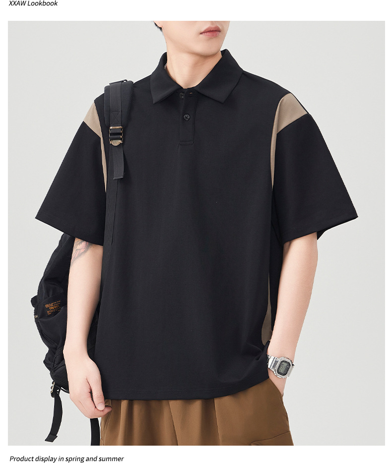 Muqiu 남성복 ∠ American Retro Polo 셔츠 반팔 남성용 여름 느슨한 플러스 사이즈 대비 컬러 바느질 티셔츠 탑스토어 가기