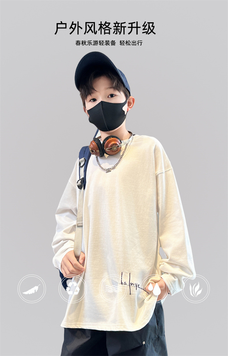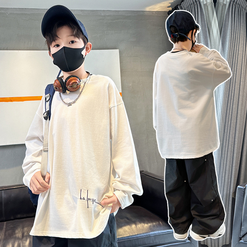 어린이 면 긴팔 티셔츠 백지베이스 셔츠 2025 봄 새 도착 중다 소년의 유행 봄 가을 셔츠