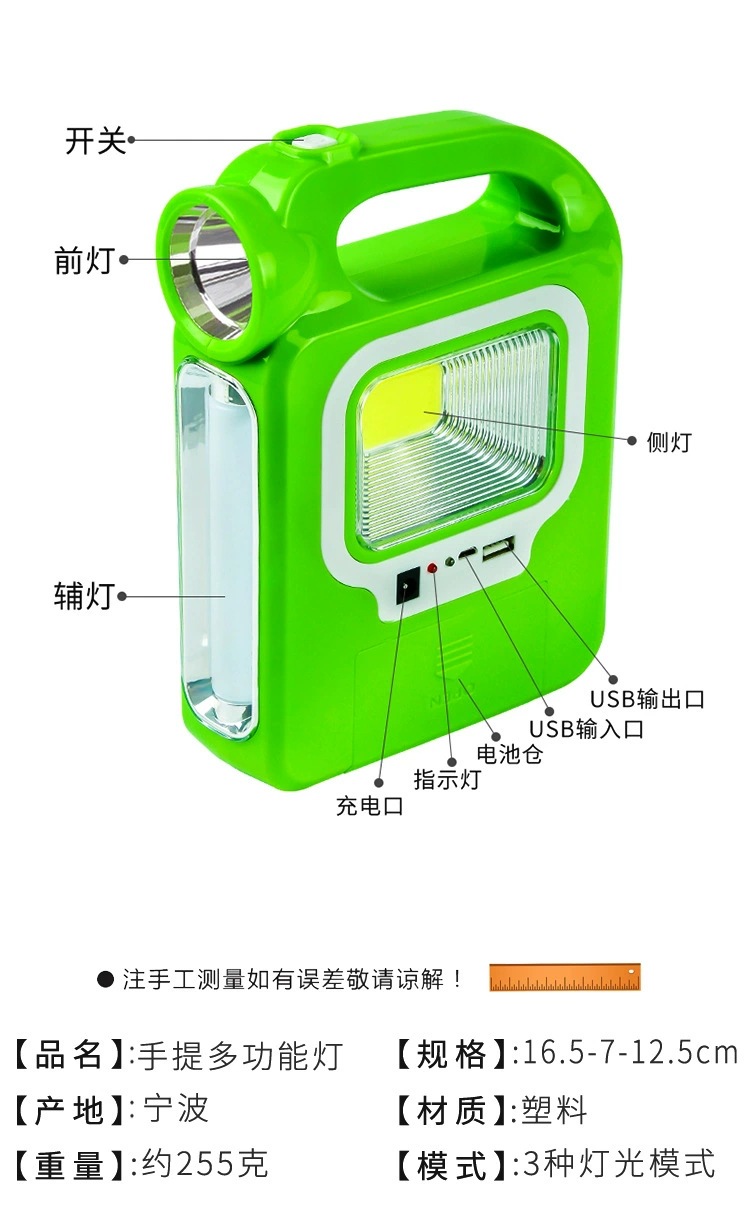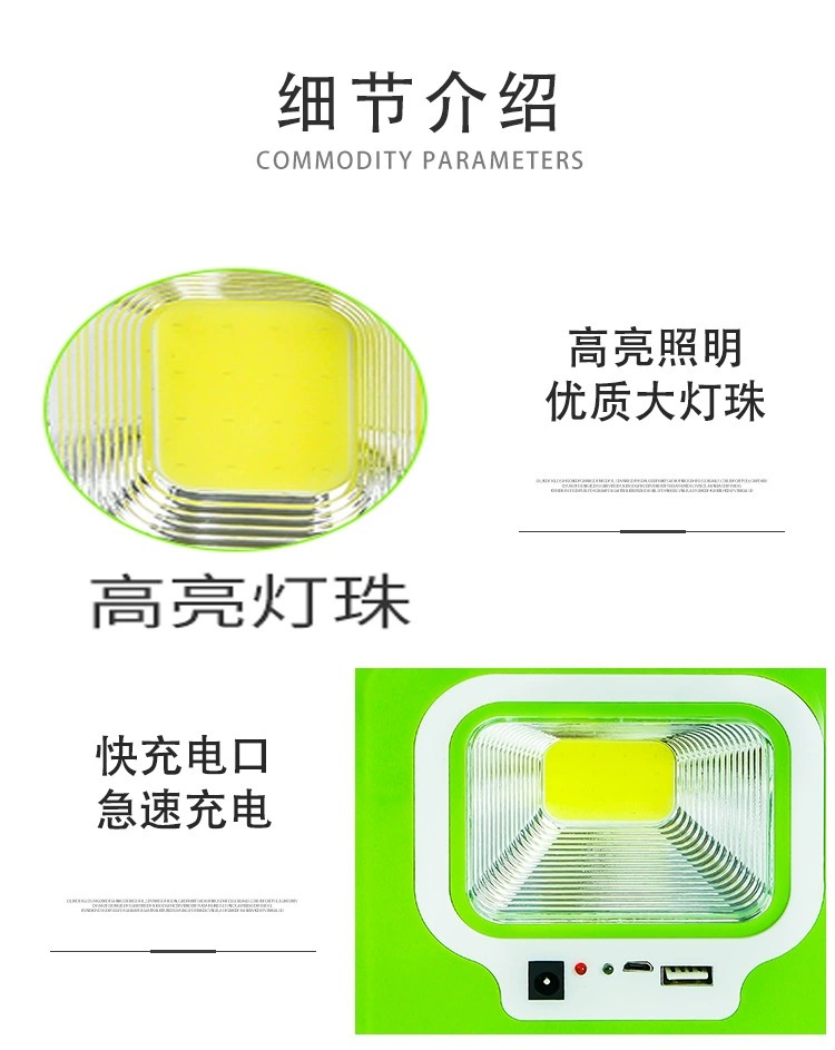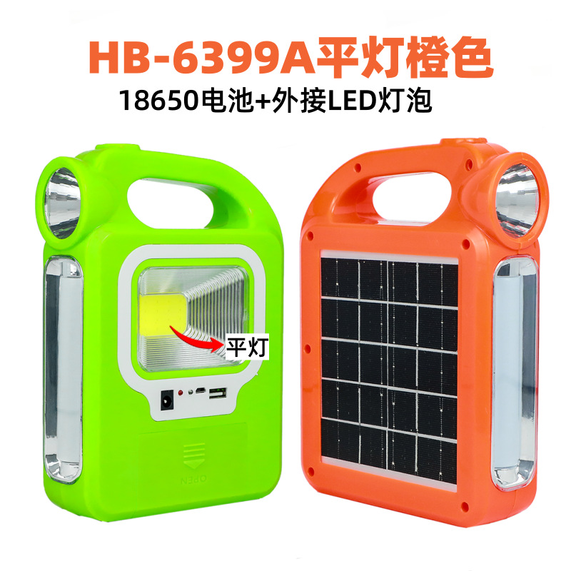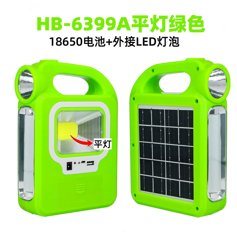 • 태양광 휴대용 평면 조명 녹색 [HB6399A 배터리 + 외부 LED 조명]