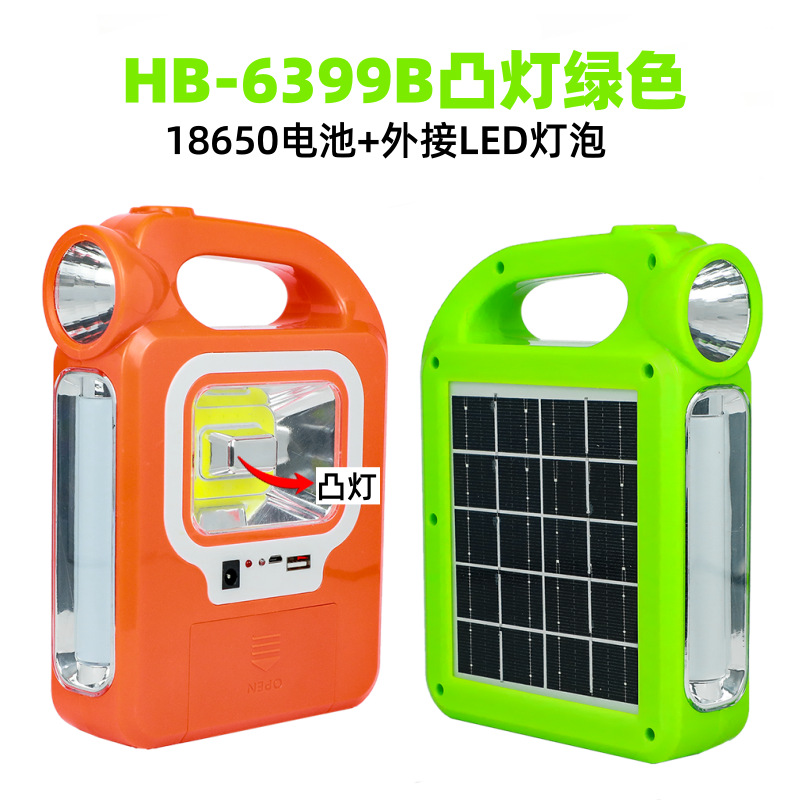 • 태양광 휴대용 볼록형 밝은 녹색 [HB6399B 배터리 + 외부 LED 조명