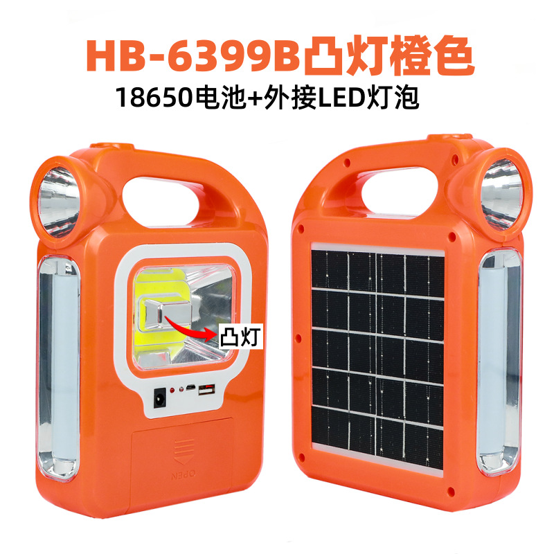 • 태양광 휴대용 볼록 조명 주황색 [HB6399B 배터리 + 외부 LED