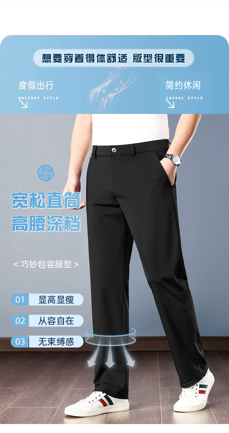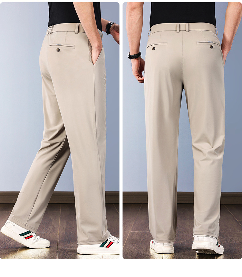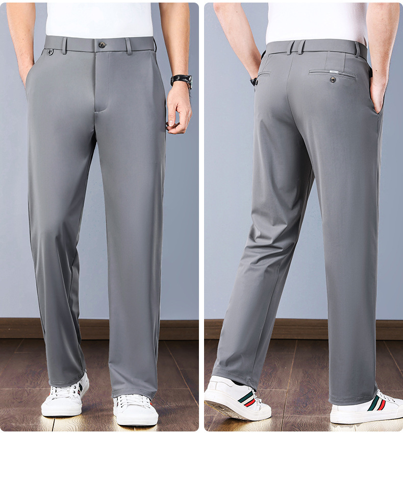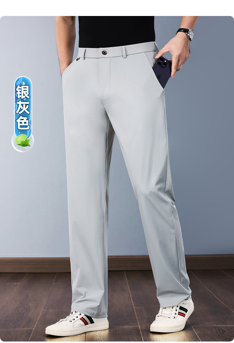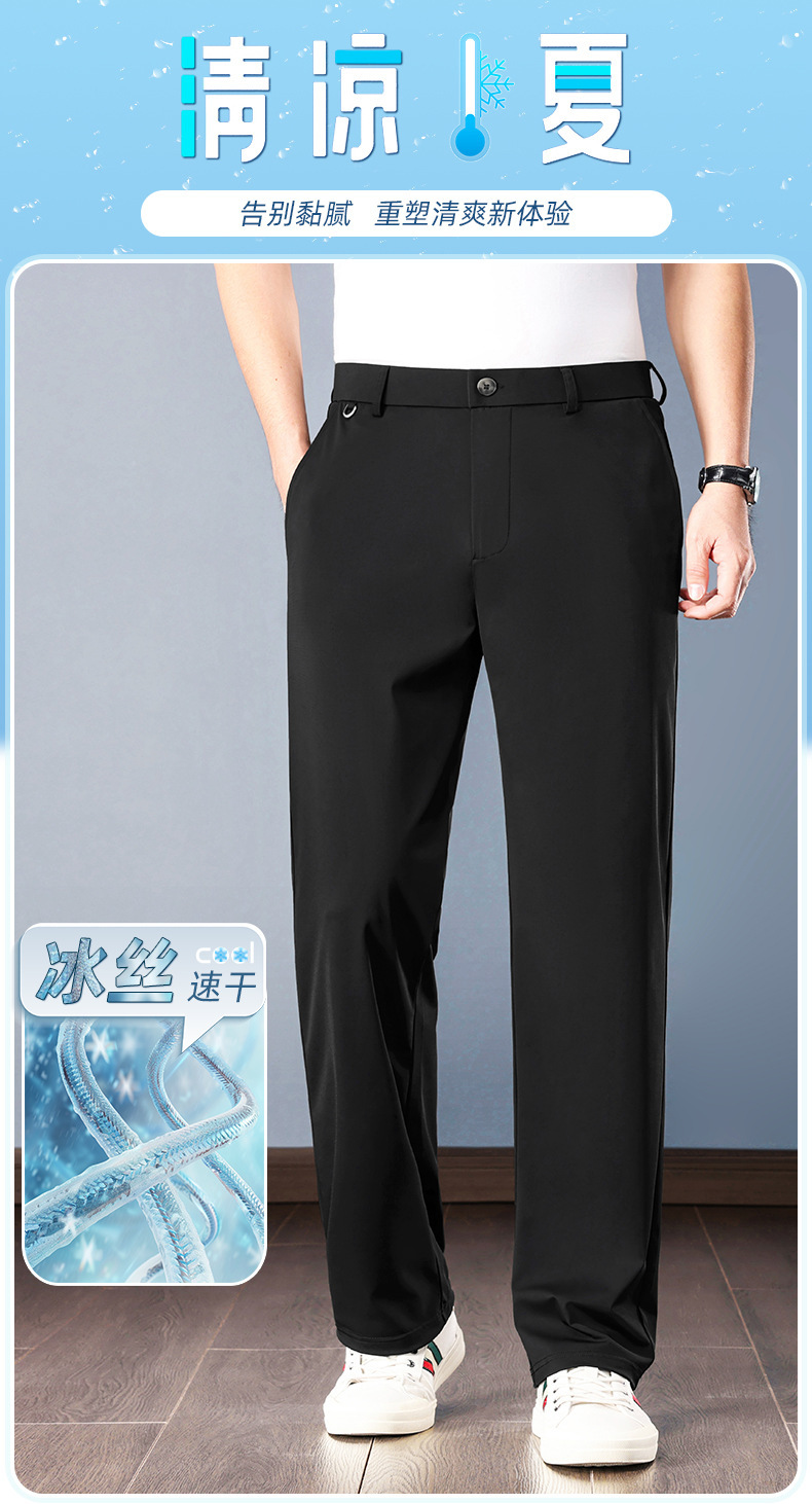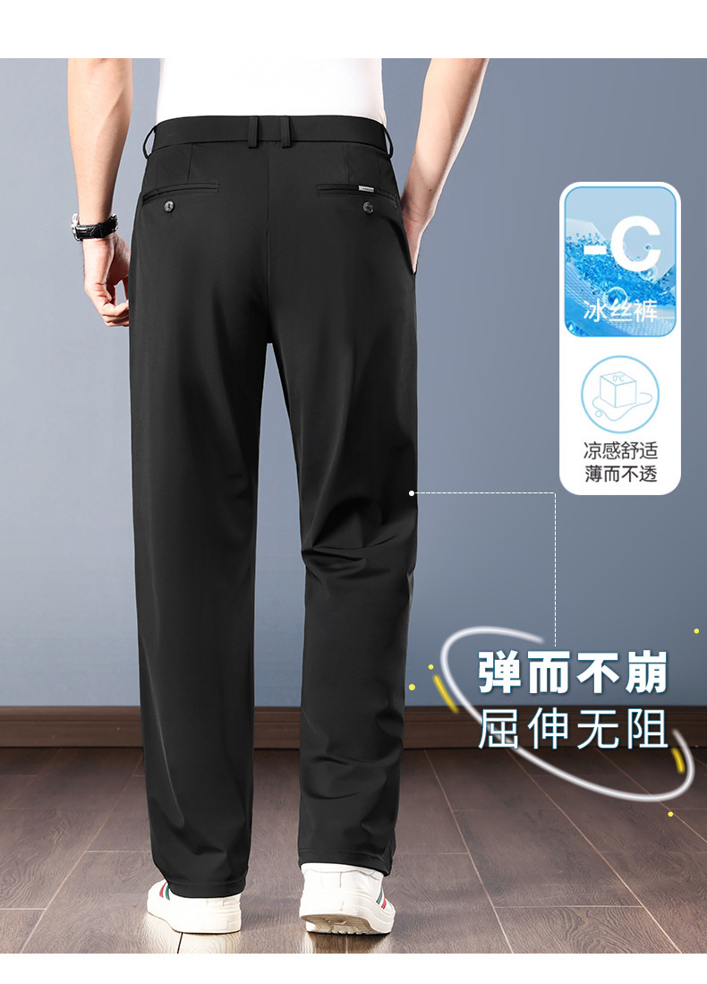 하이 엔드 아이스 실크 바지 남자 여름 얇은 남자 캐주얼 바지 스트레치 비즈니스 바지 중년 아빠 스트레이트 남자 바지