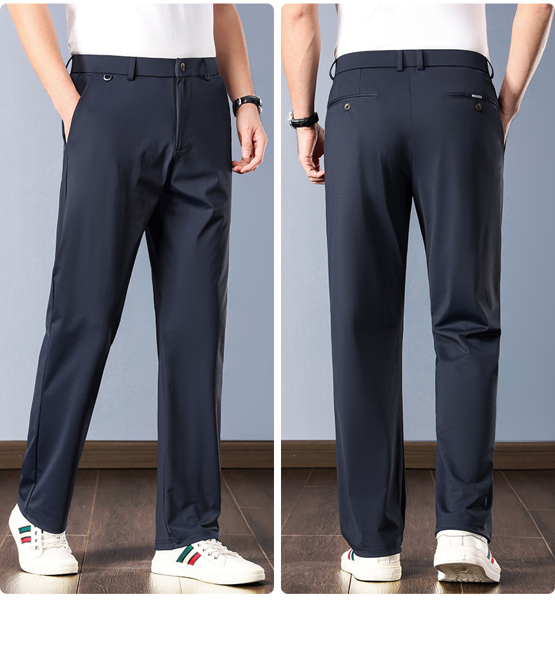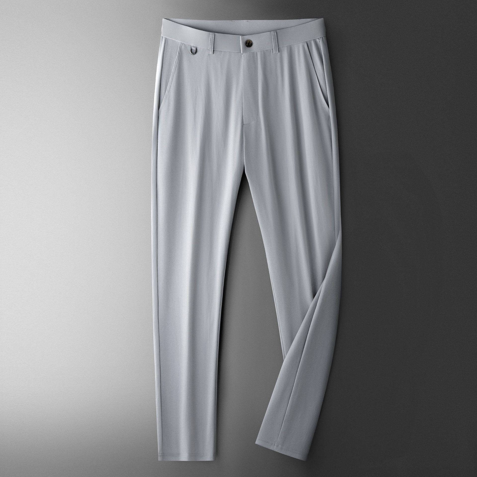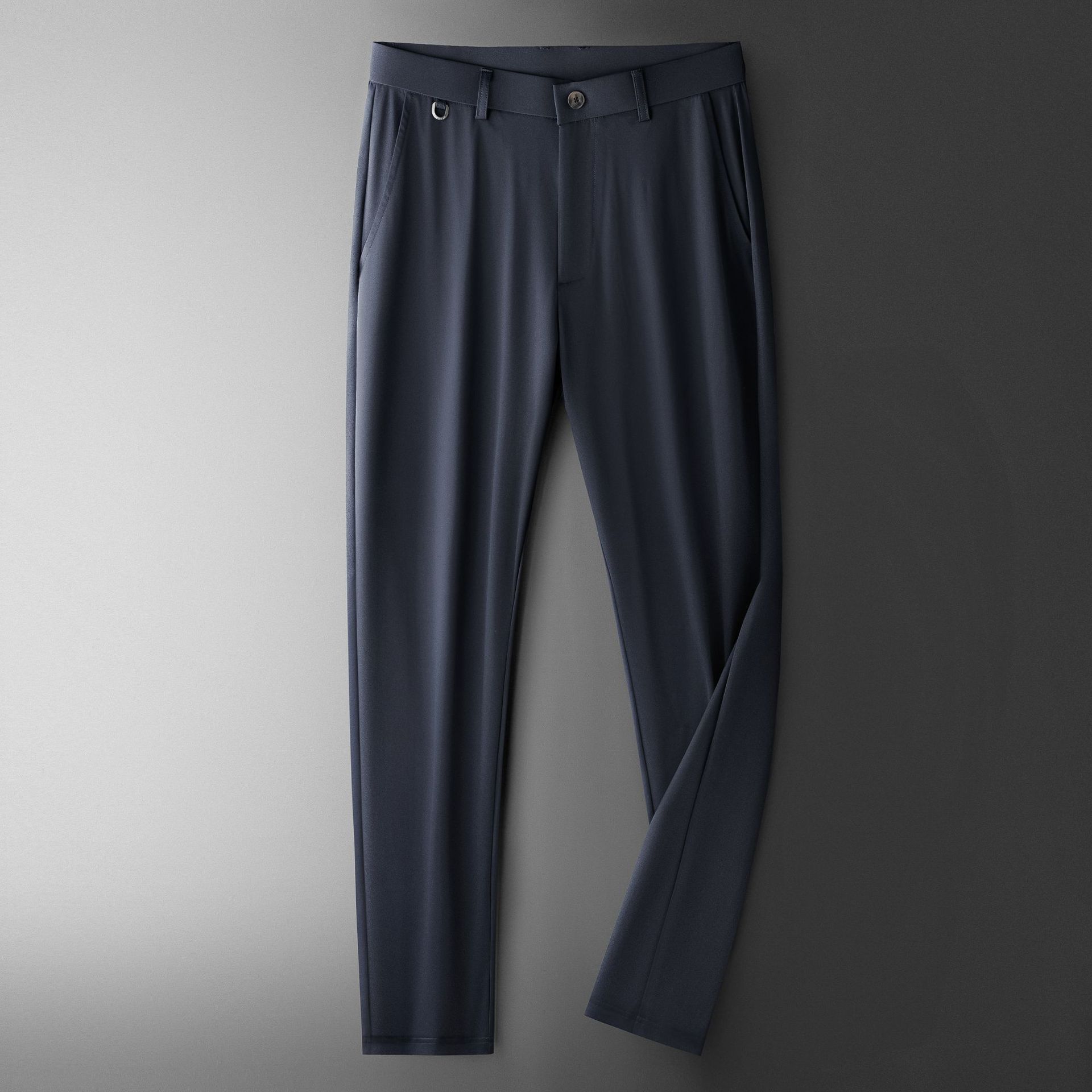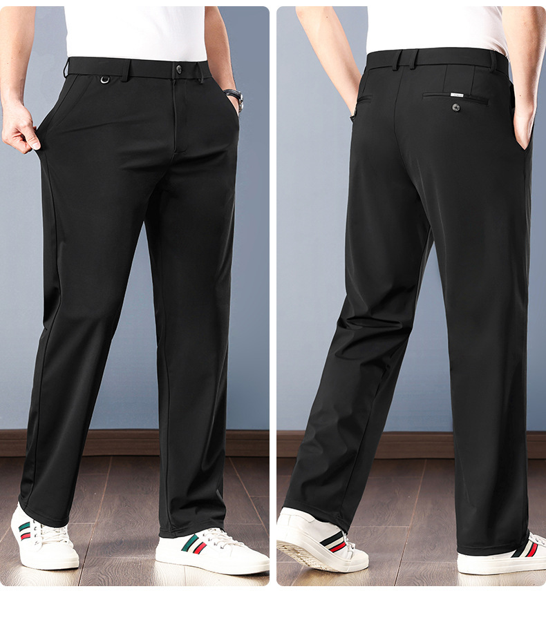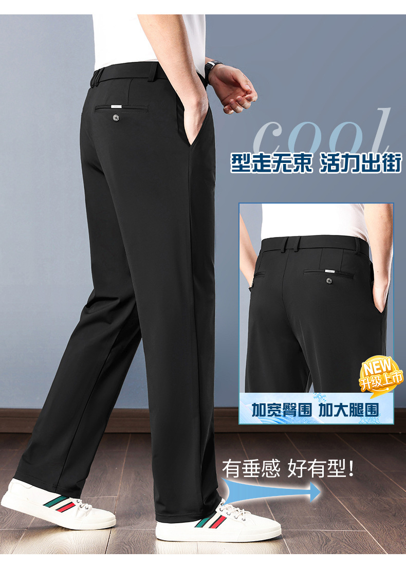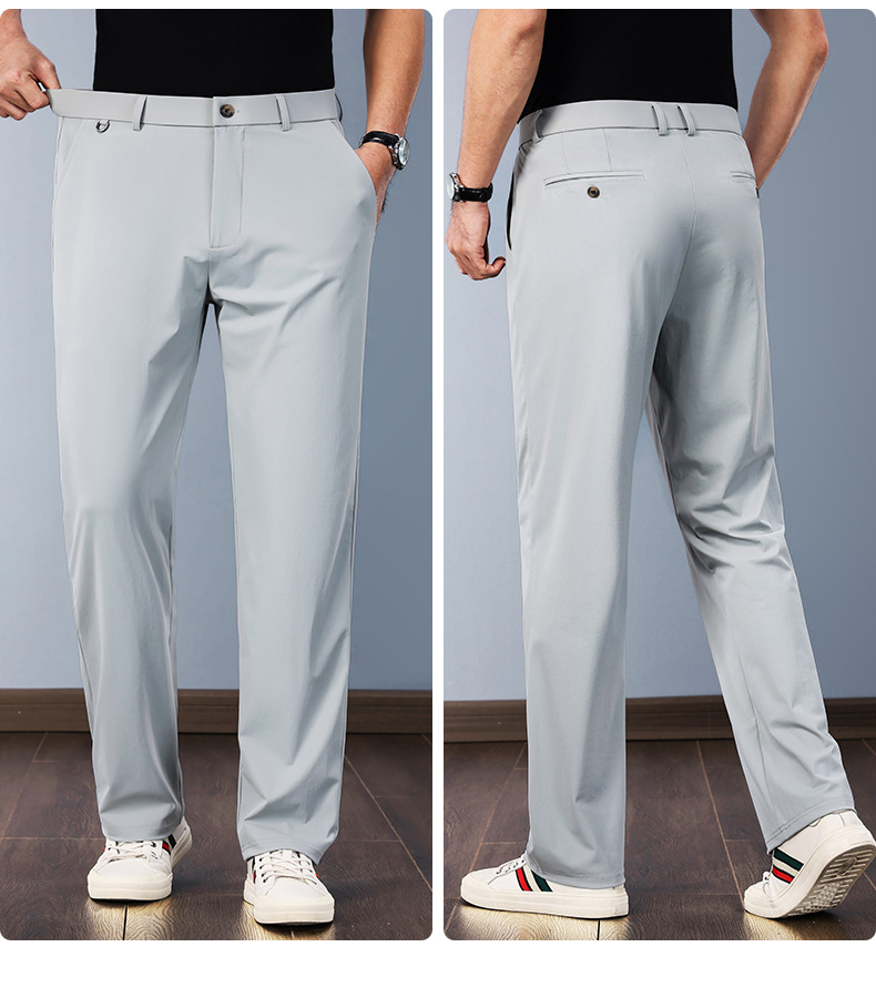 하이 엔드 아이스 실크 바지 남자 여름 얇은 남자 캐주얼 바지 스트레치 비즈니스 바지 중년 아빠 스트레이트 남자 바지