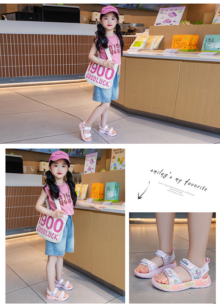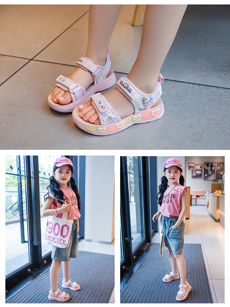 여자 샌들 2025 새로운 여름 소녀 중소 어린이 스포츠 공주 신발 초등 학생 패션 비치 신발스토어 가기