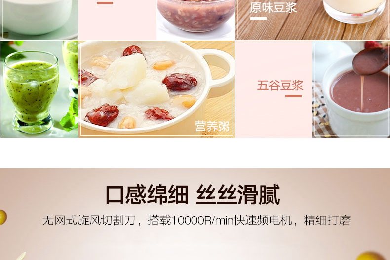 该款豆浆机自动加热 干豆 湿豆 米糊 五谷 果汁 玉米汁 八宝粥 做出来的豆浆细腻无渣 非常好