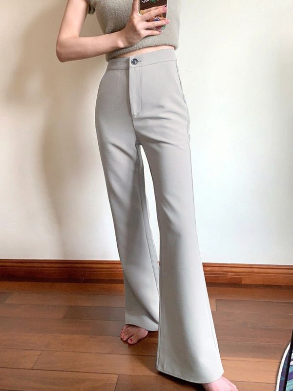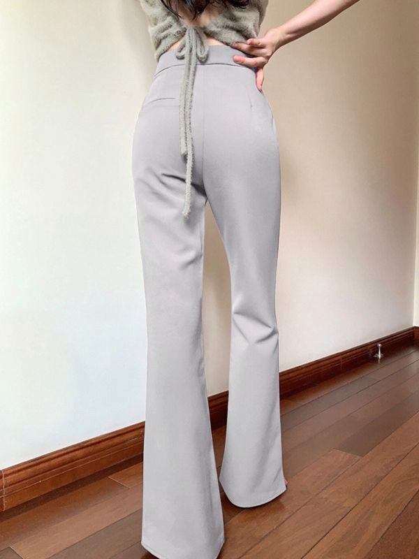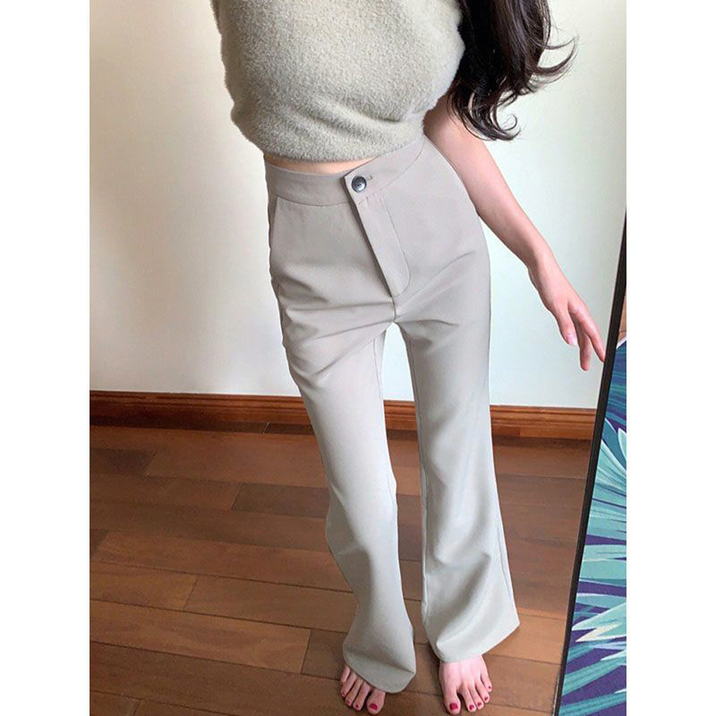 회색 좁은 버전 뿔 넓은 다리 바지 여성 2025 봄 새로운 높은 허리 슬리밍 캐주얼 마이크로-라라 바지스토어 가기