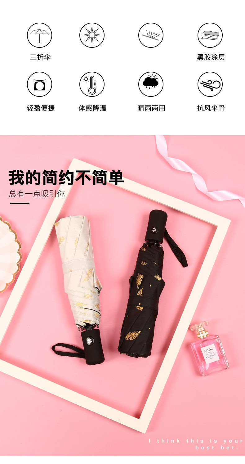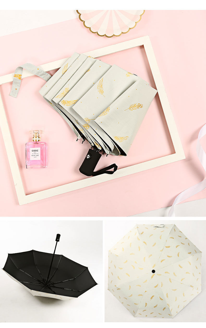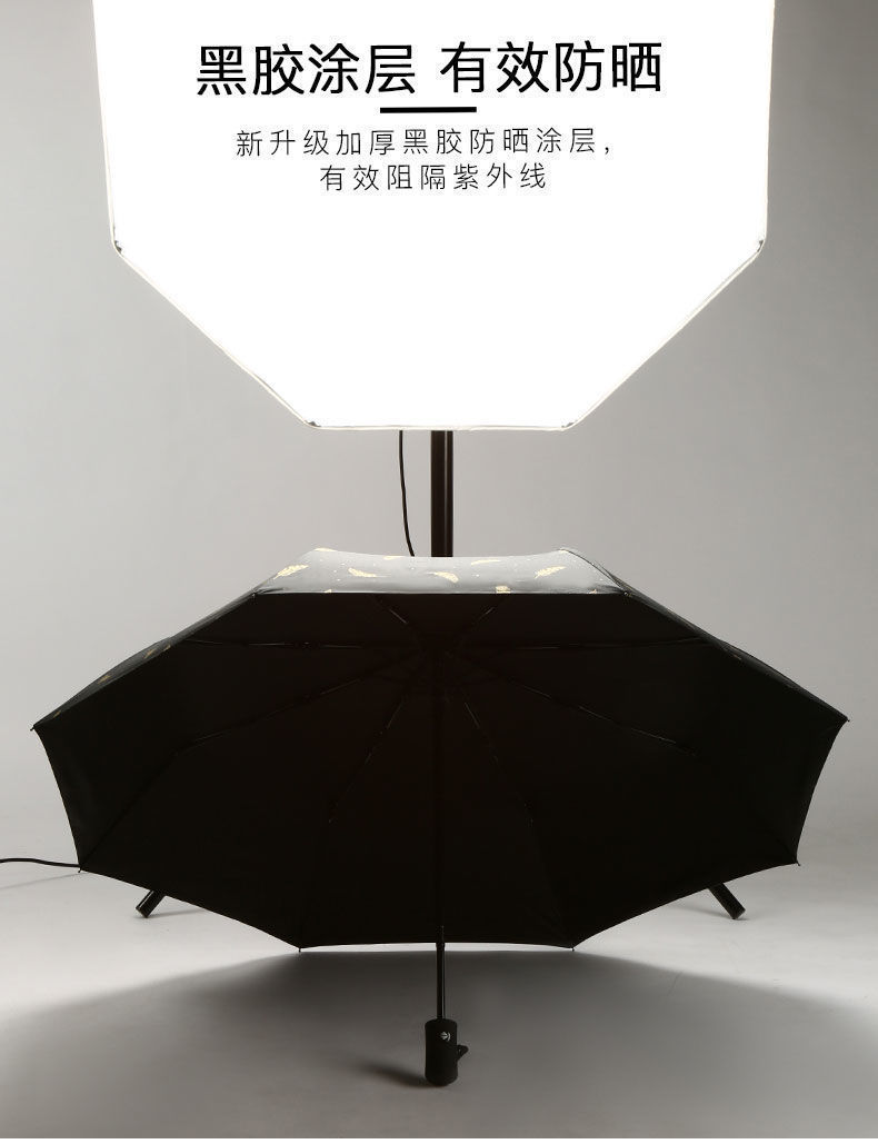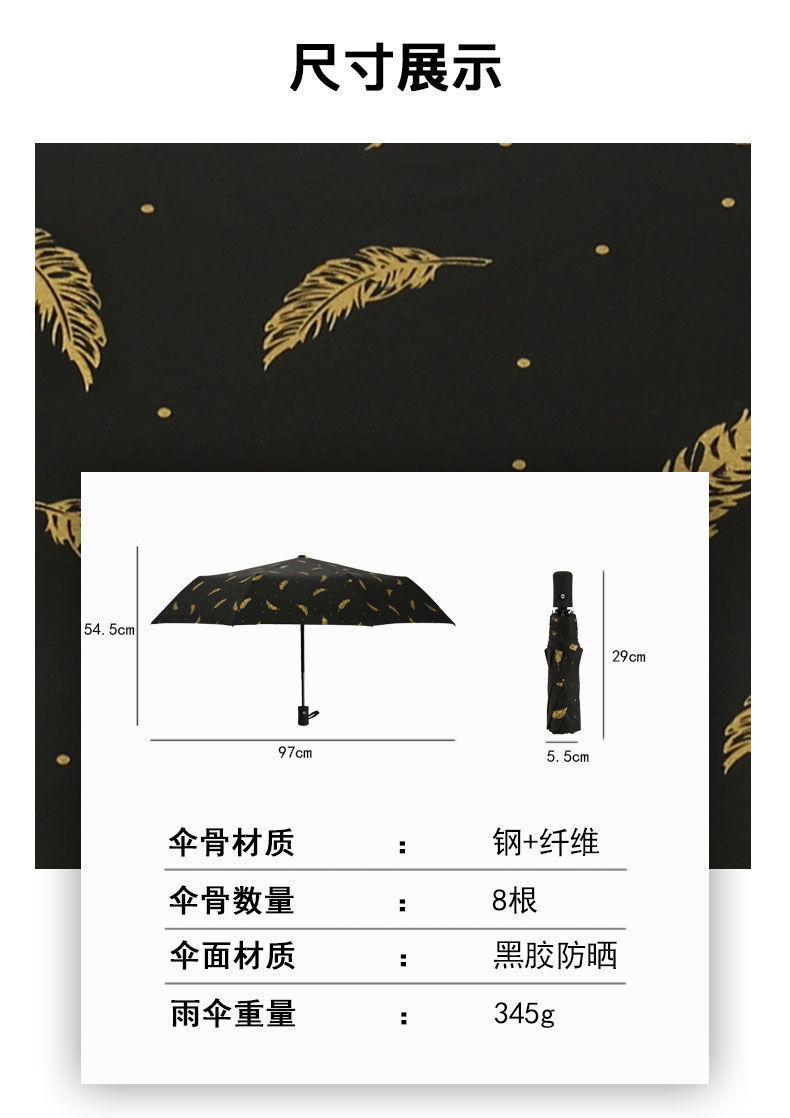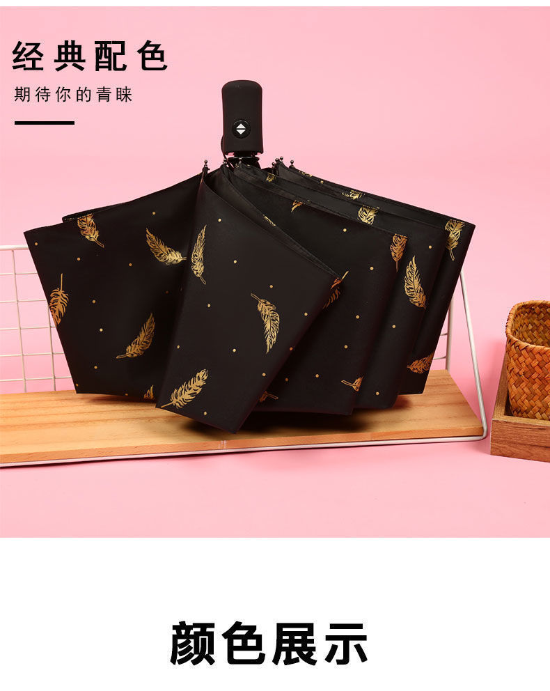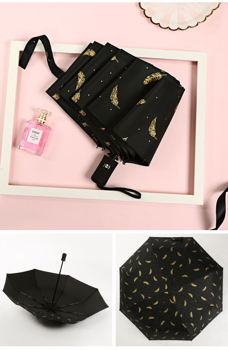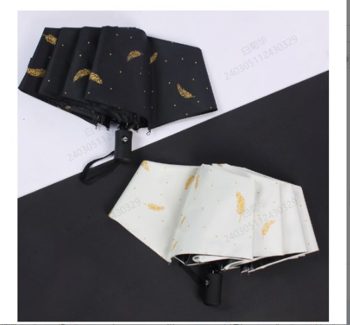 • 핫 스탬핑 깃털 접는 우산, 깃털 검정-1개