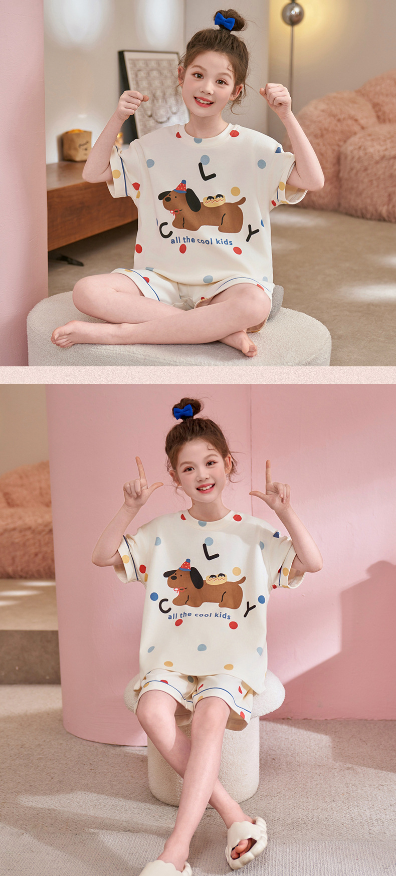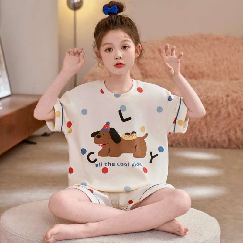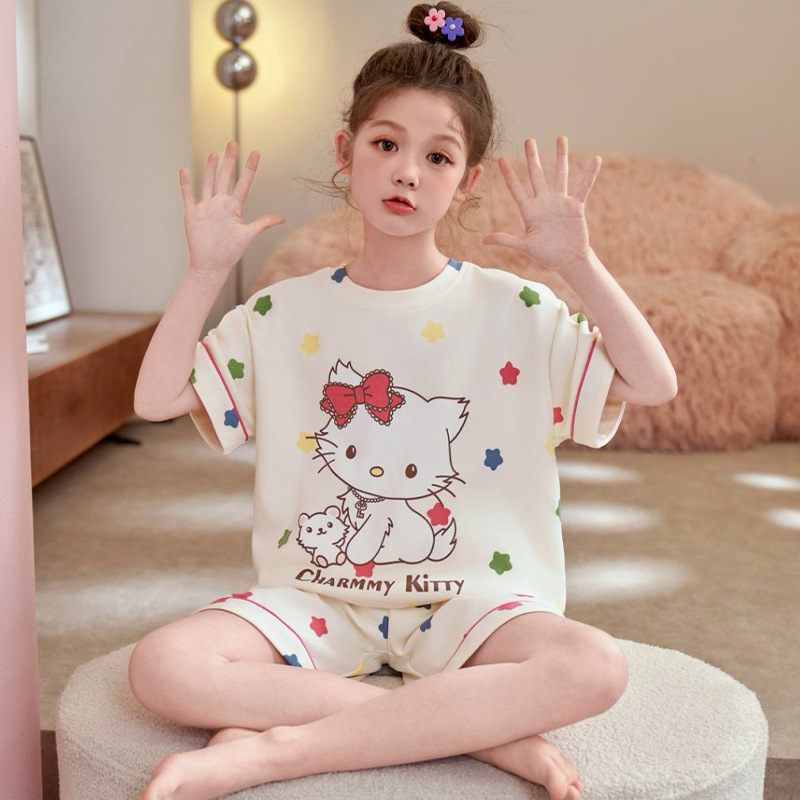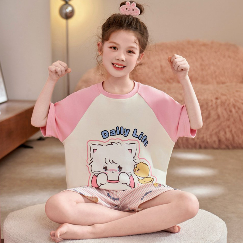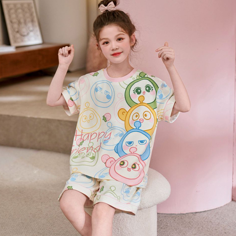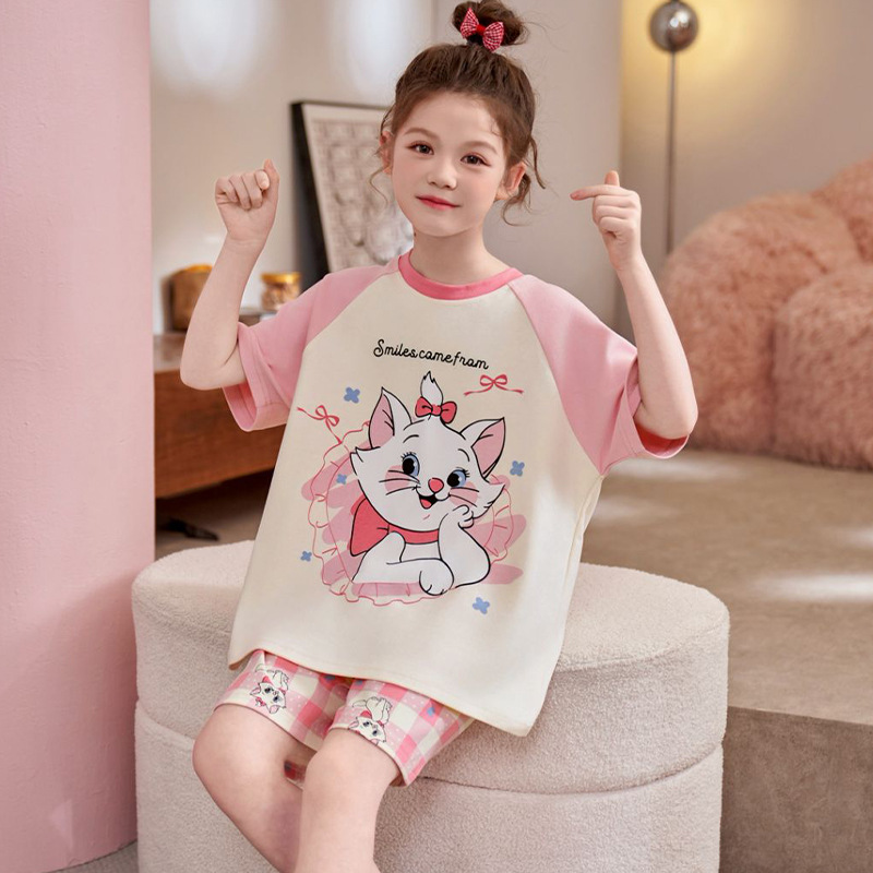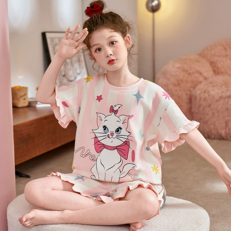 소녀 잠옷 여름 순면 반팔 얇은 2025 새로운 스타일 여름 어린이 공주 스타일 12 세 소녀 중 큰 아이들