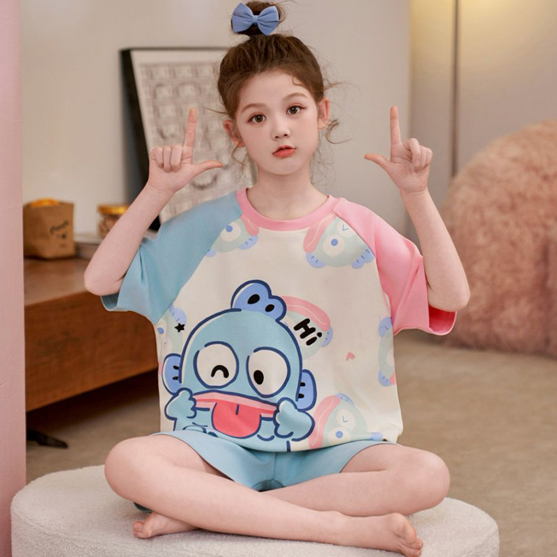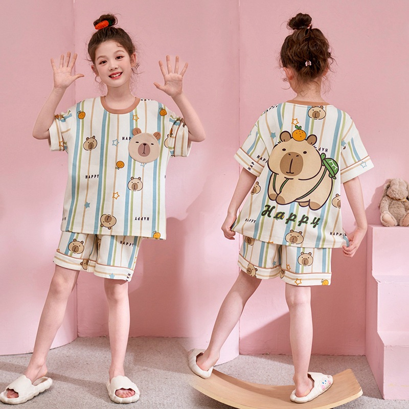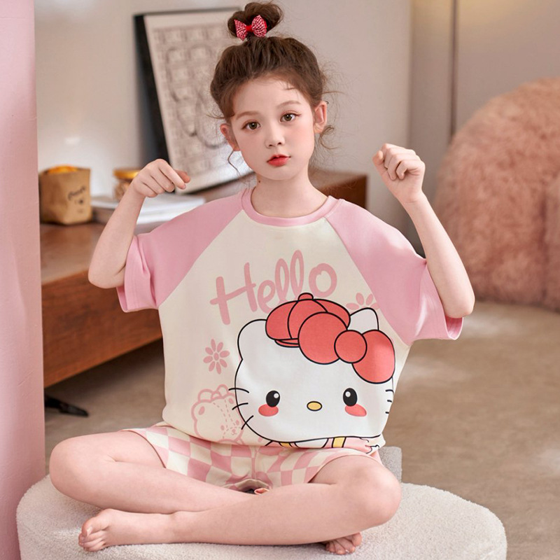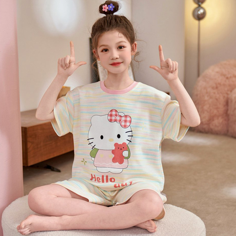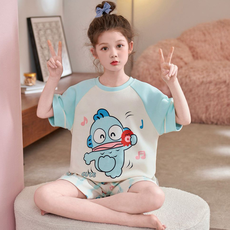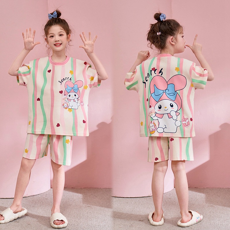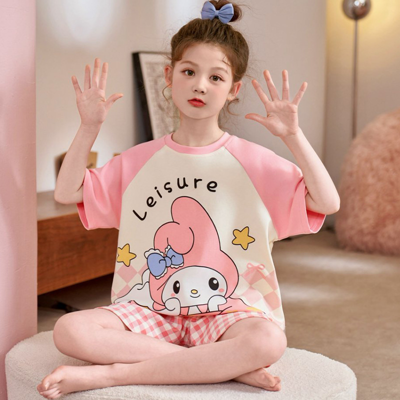 소녀 잠옷 여름 순면 반팔 얇은 2025 새로운 스타일 여름 어린이 공주 스타일 12 세 소녀 중 큰 아이들