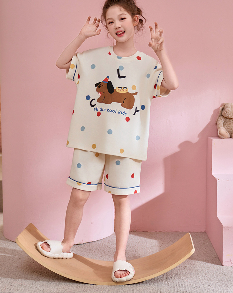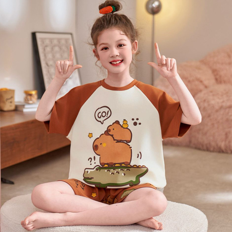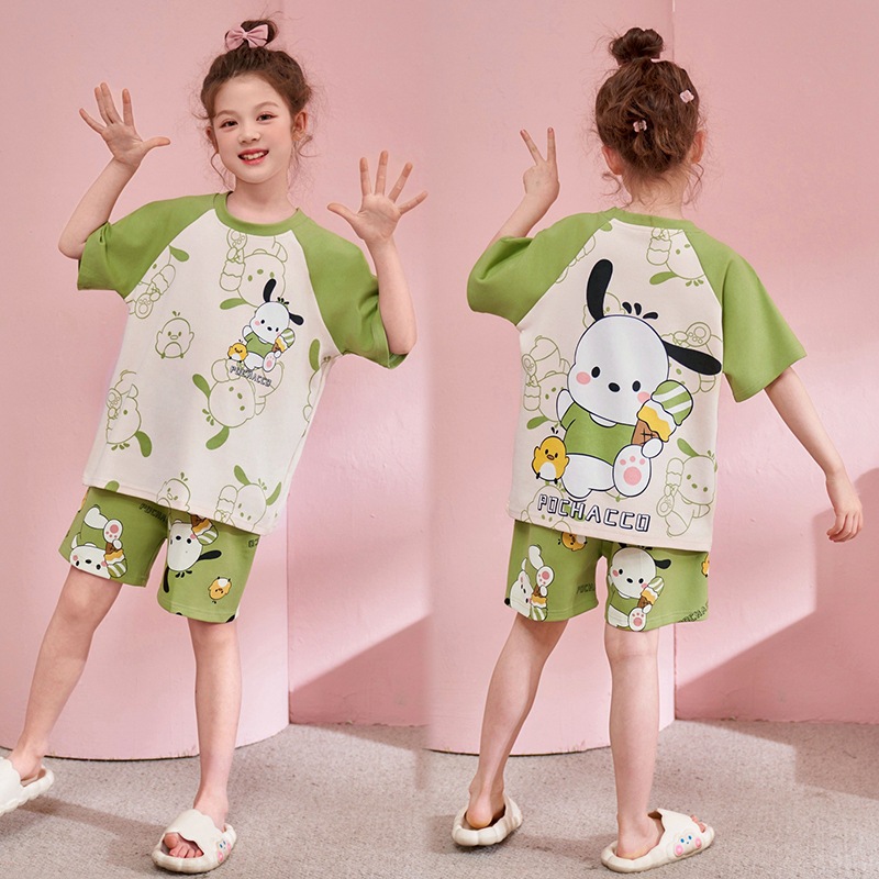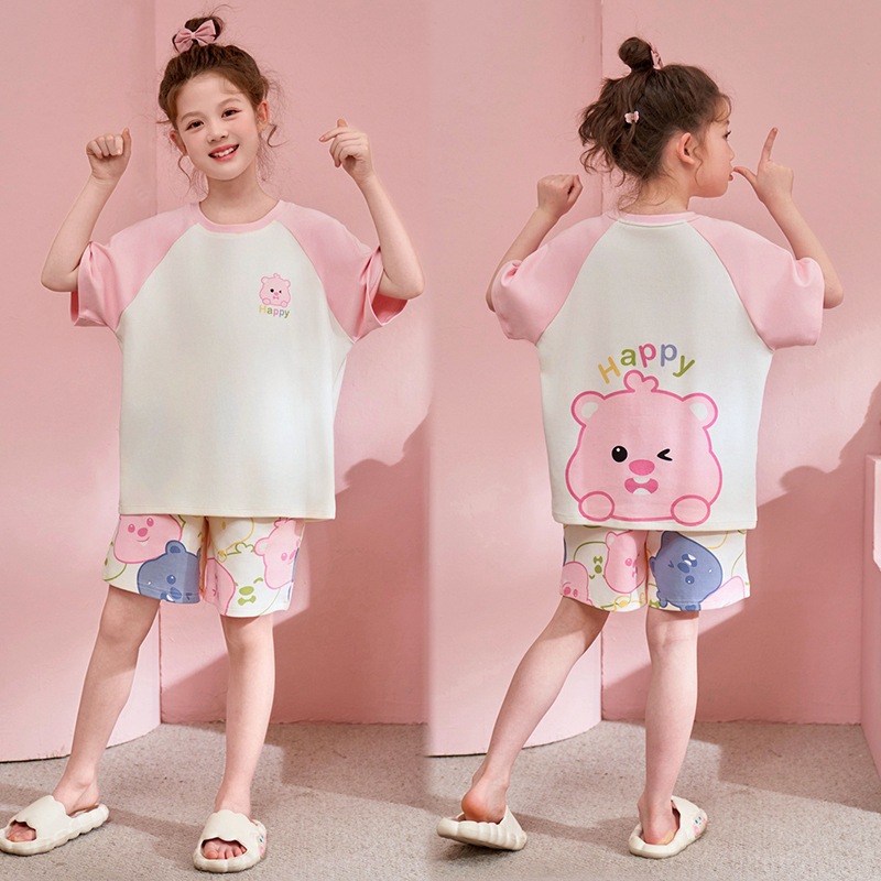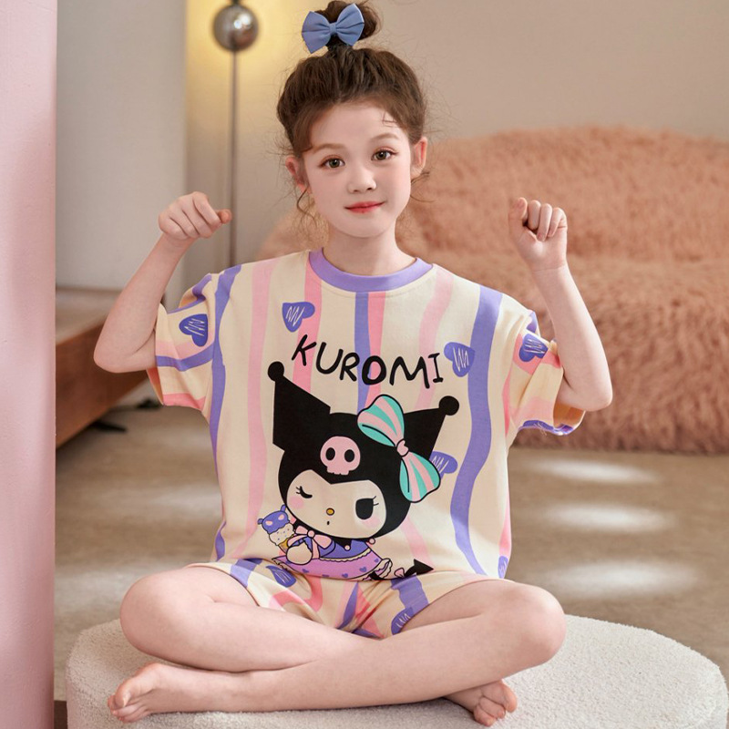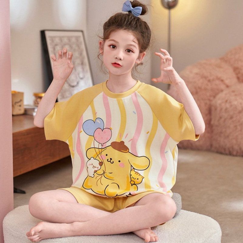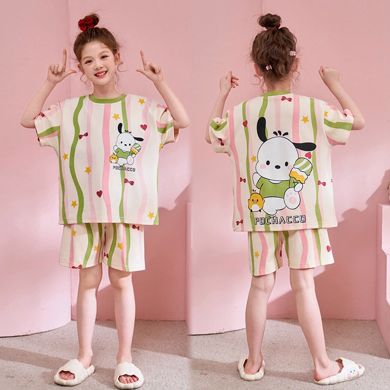 소녀 잠옷 여름 순면 반팔 얇은 2025 새로운 스타일 여름 어린이 공주 스타일 12 세 소녀 중 큰 아이들