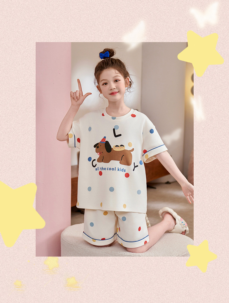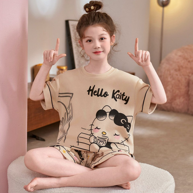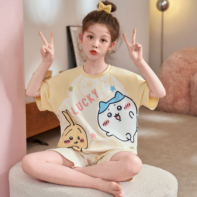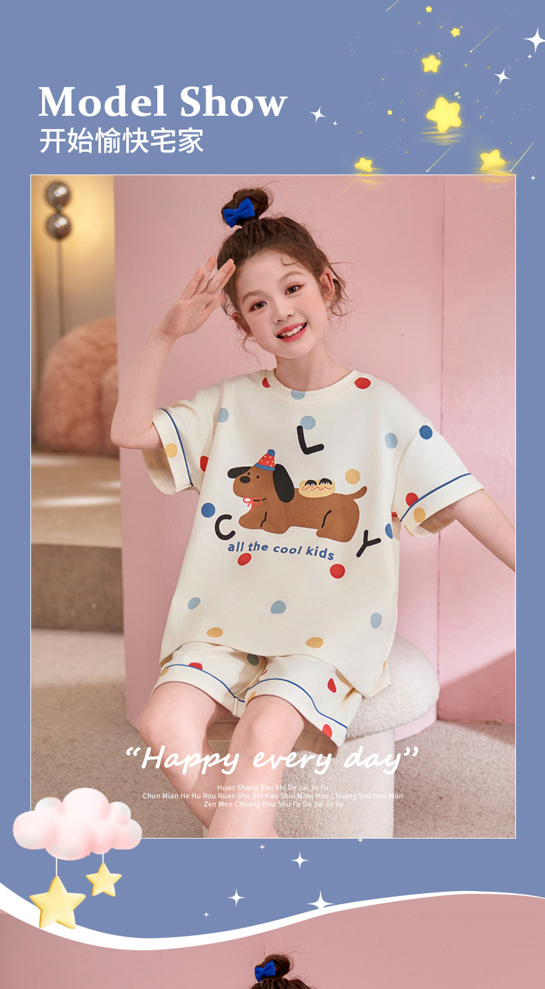 소녀 잠옷 여름 순면 반팔 얇은 2025 새로운 스타일 여름 어린이 공주 스타일 12 세 소녀 중 큰 아이들스토어 가기