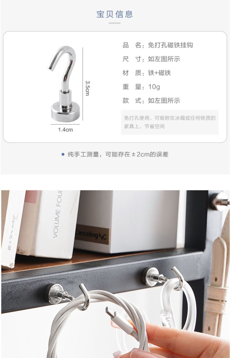 마그네틱 후크 냉장고 자석 비 천공 강한 비 추적 자기 후크 화장실 자석 도난 방지 후크스토어 가기