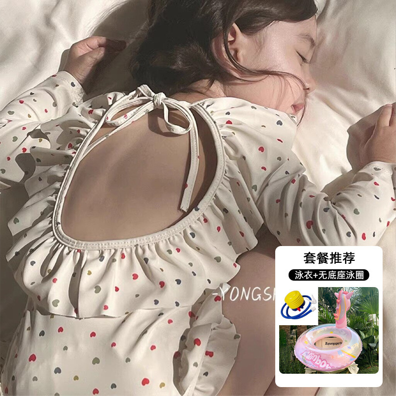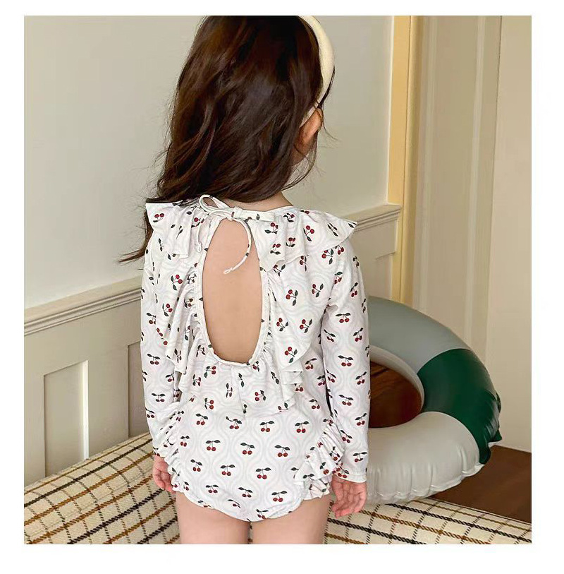 소녀의 꽃 긴팔 수영복 선스크린 새 스타일 소녀 비키니 수영복 2025 어린이 리키 백 수영복