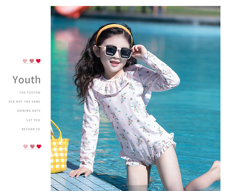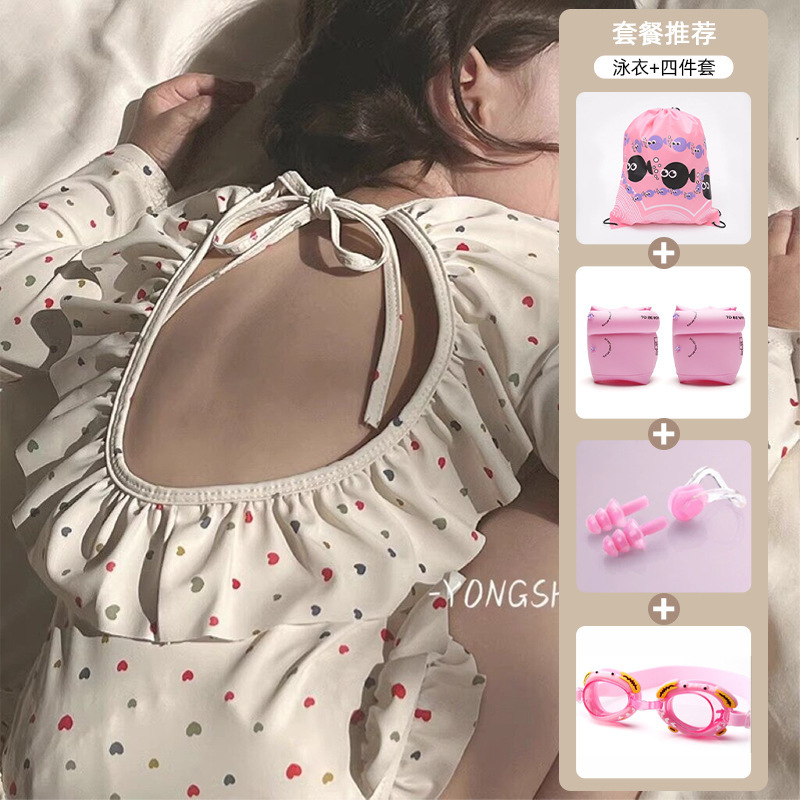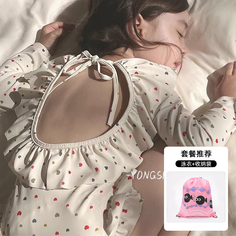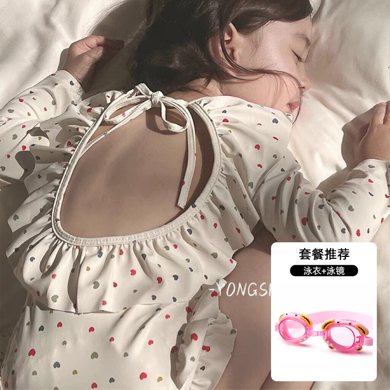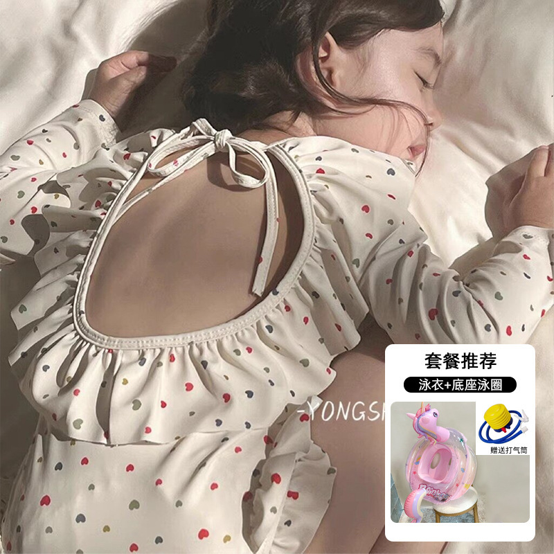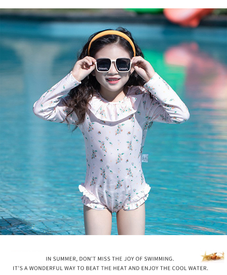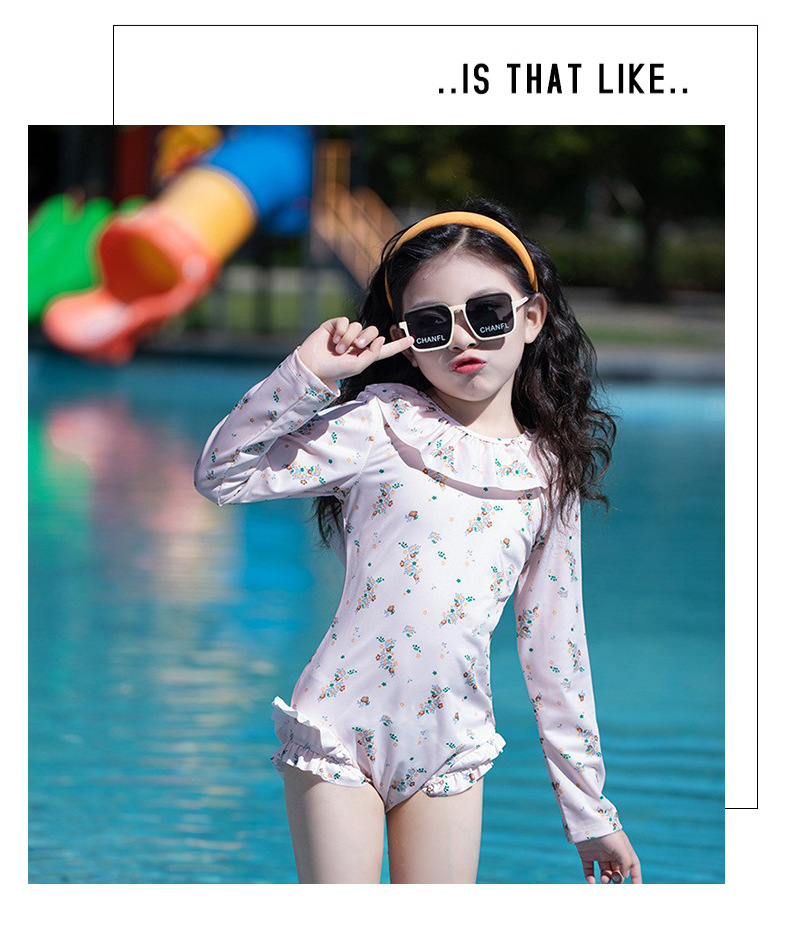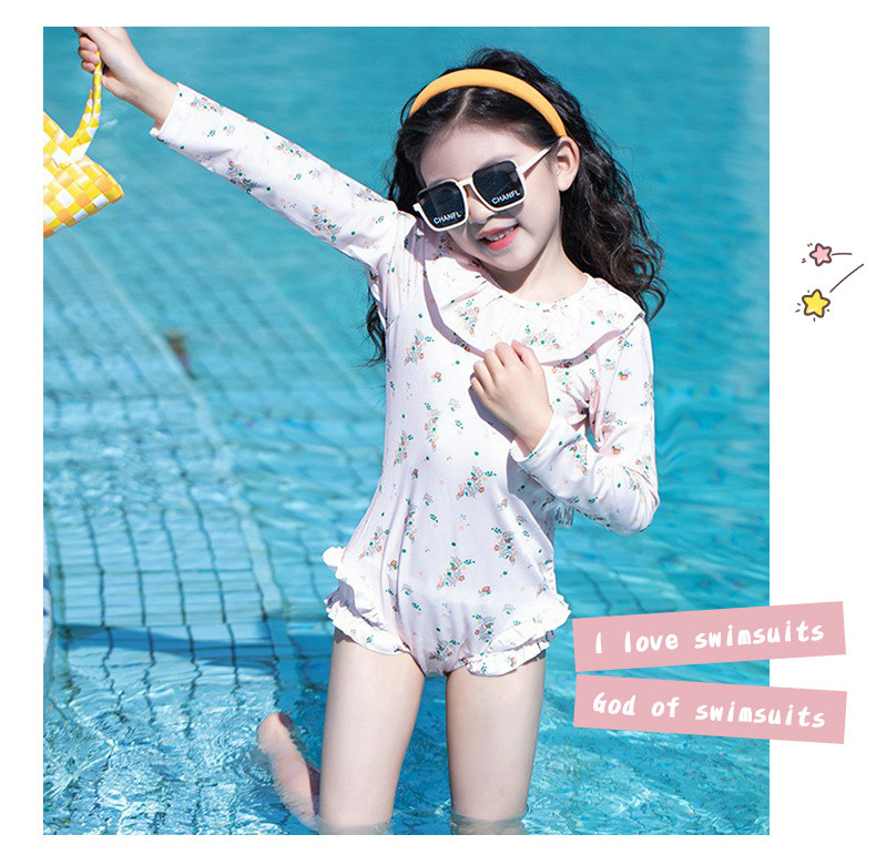 소녀의 꽃 긴팔 수영복 선스크린 새 스타일 소녀 비키니 수영복 2025 어린이 리키 백 수영복스토어 가기