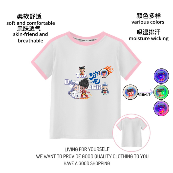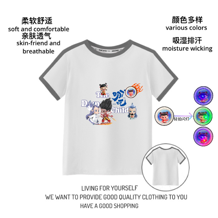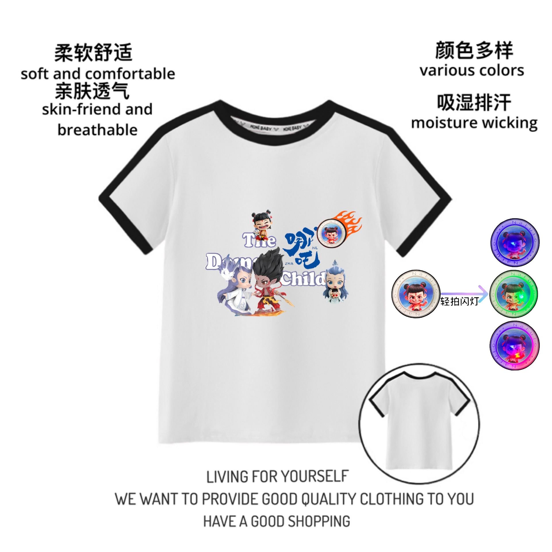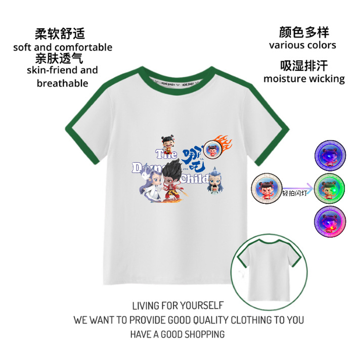 여름 퓨어 코튼 남성과 여성 어린이 캐주얼 웨스턴 스타일 스포츠 티셔츠 탭 플래시 라이트 크리에이티브 컬러 삽입 반팔 탑