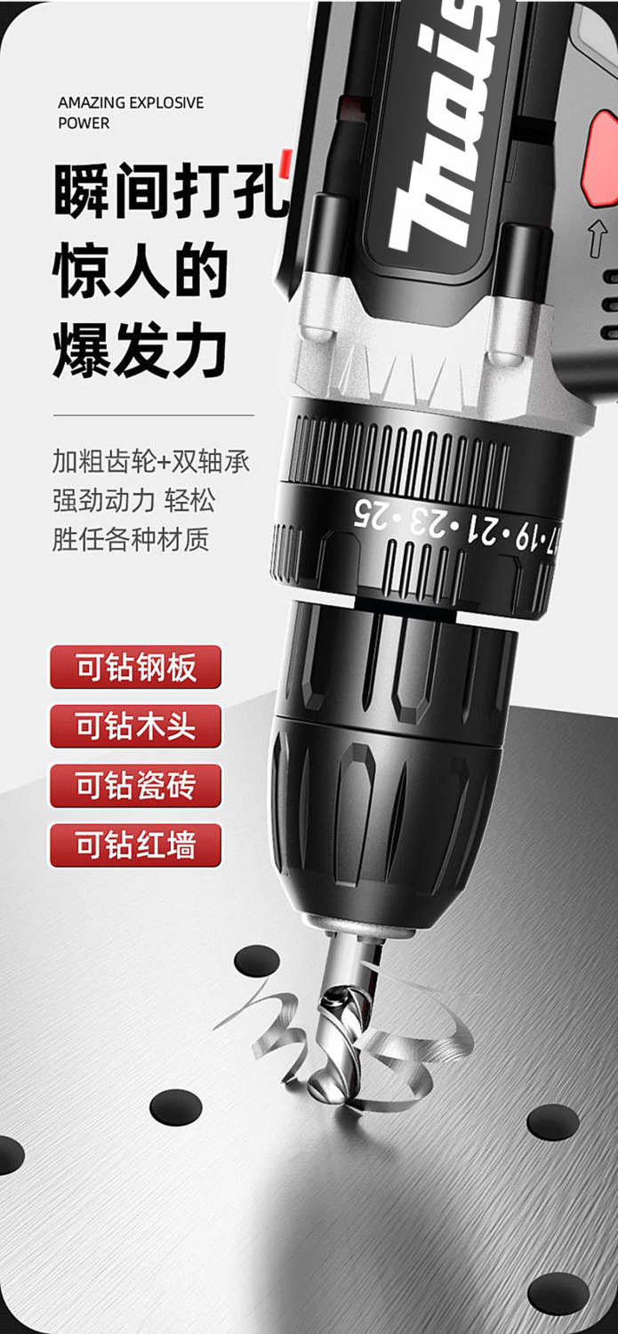 고출력 리튬 전기 드릴 충격 전기 드릴 가정용 다기능 전기 드릴 충전식 드릴 핸드 건 드릴 전기 스크루 드라이버스토어 가기