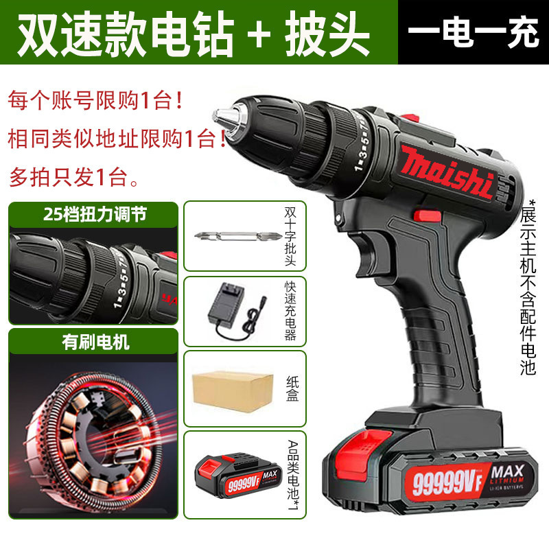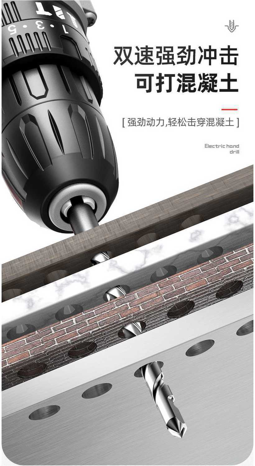 고출력 리튬 전기 드릴 충격 전기 드릴 가정용 다기능 전기 드릴 충전식 드릴 핸드 건 드릴 전기 스크루 드라이버