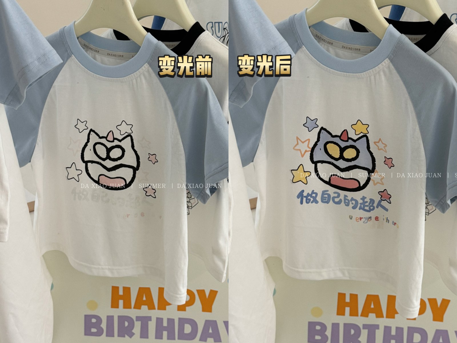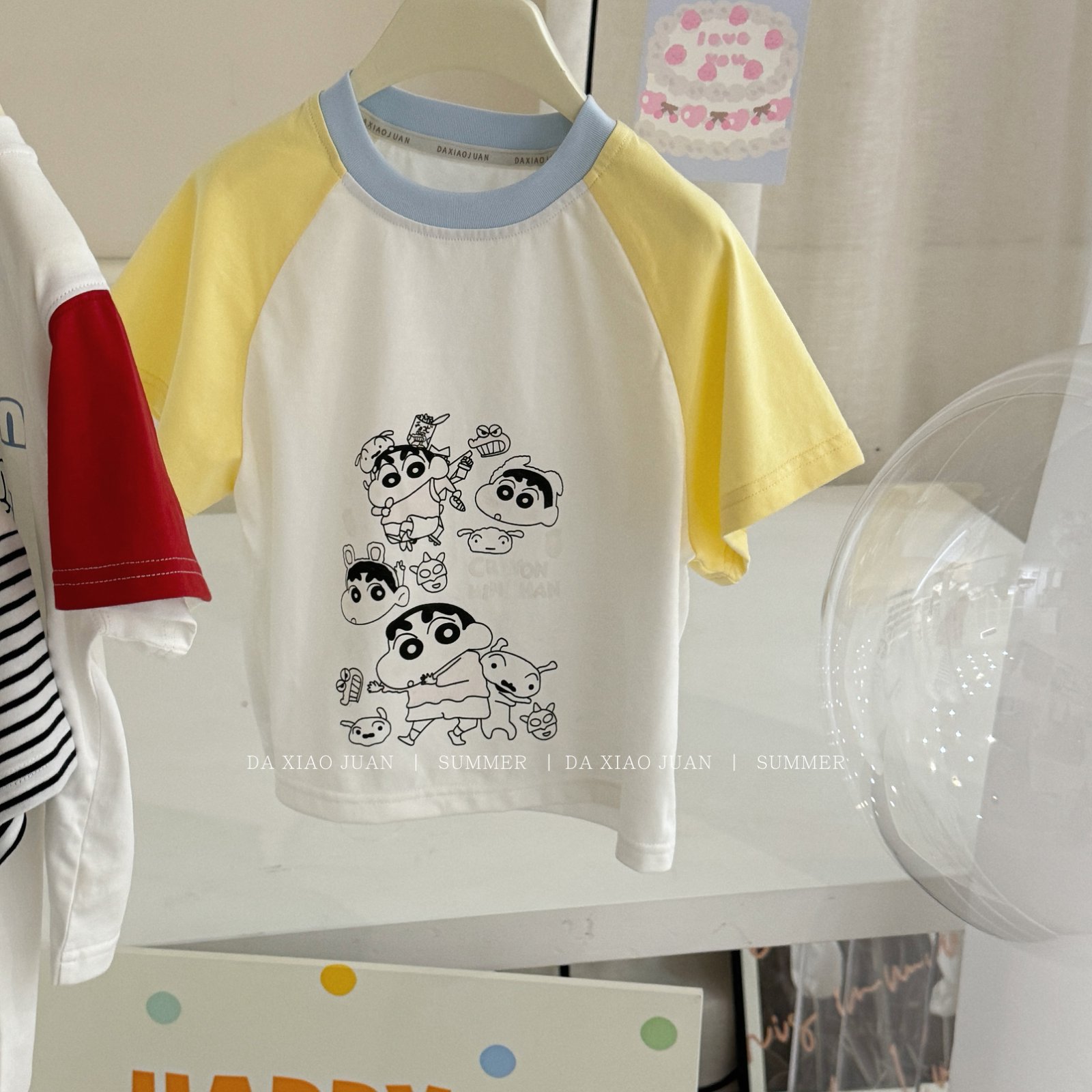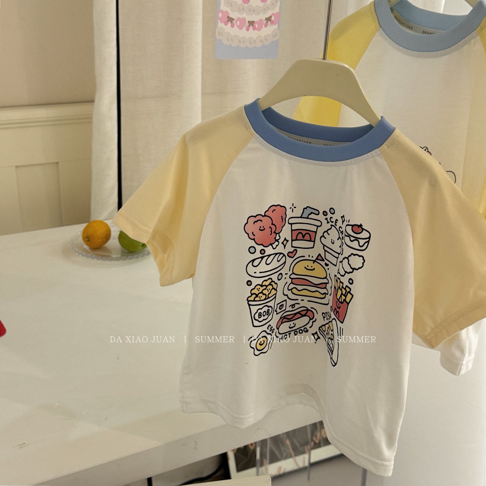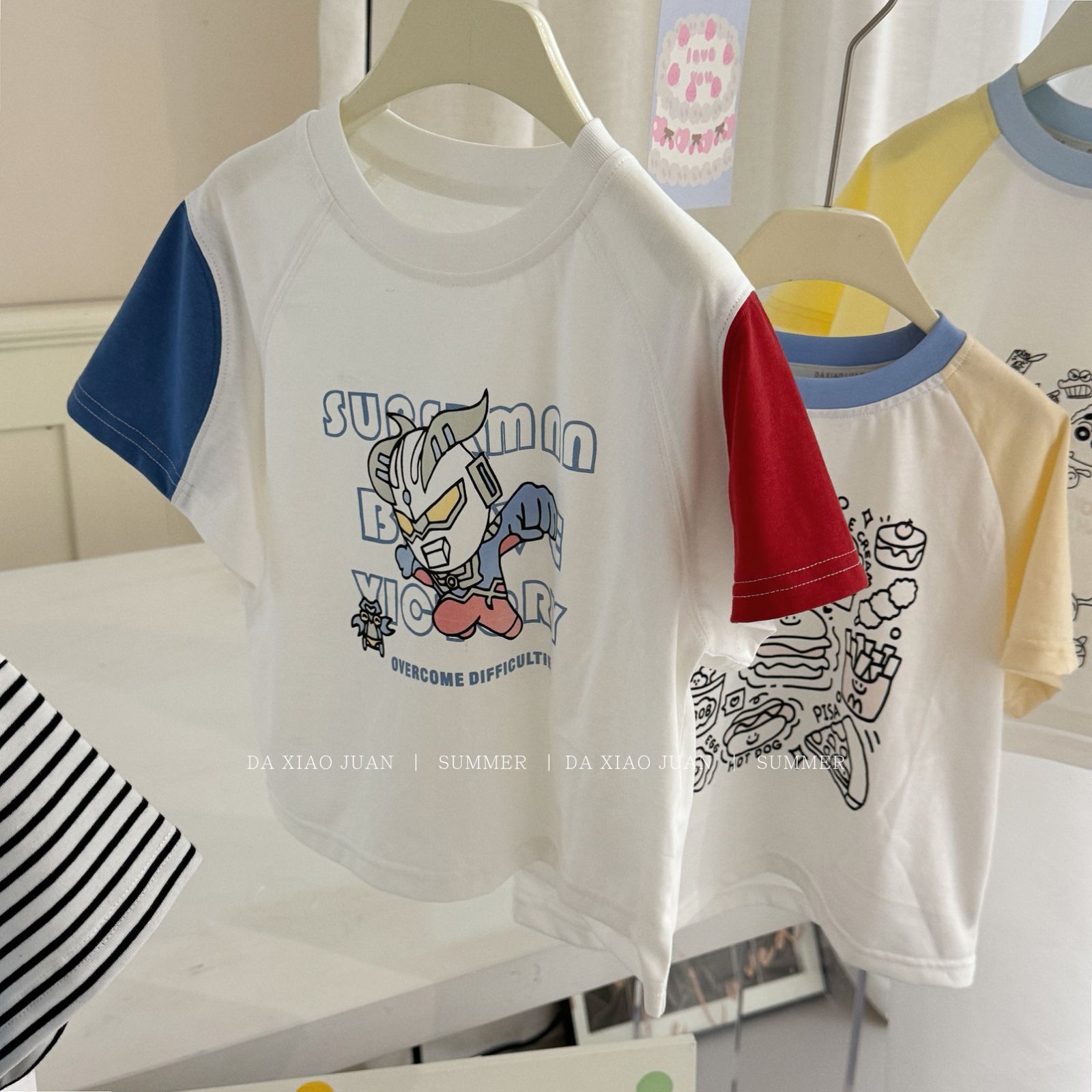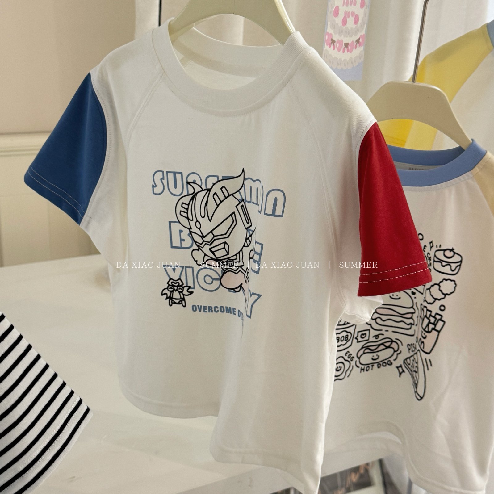 사이즈 롤 25 여름 어린이 재미 반팔 티셔츠 자외선 빛 코튼 스플라이스 슬리브 라운드 넥 탑