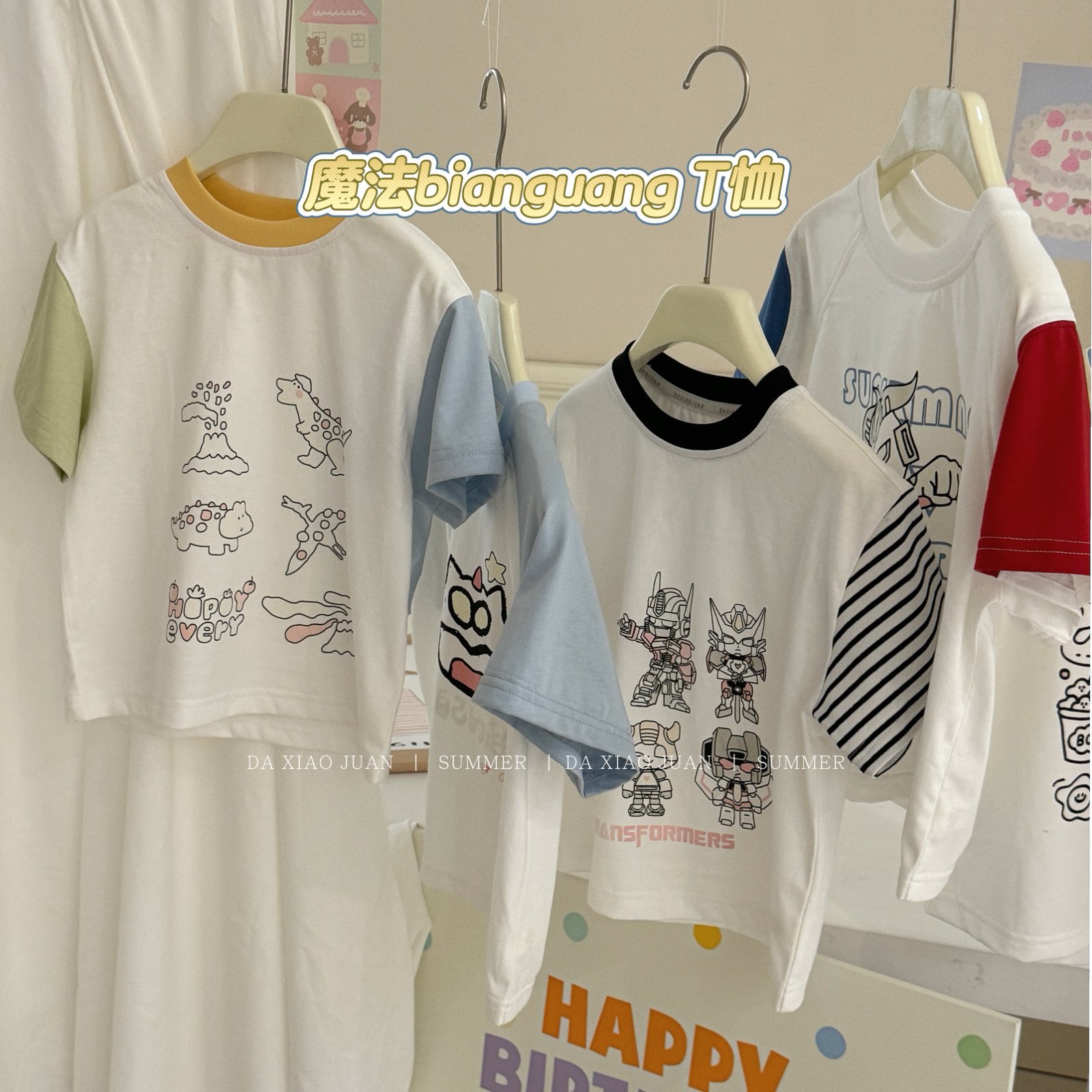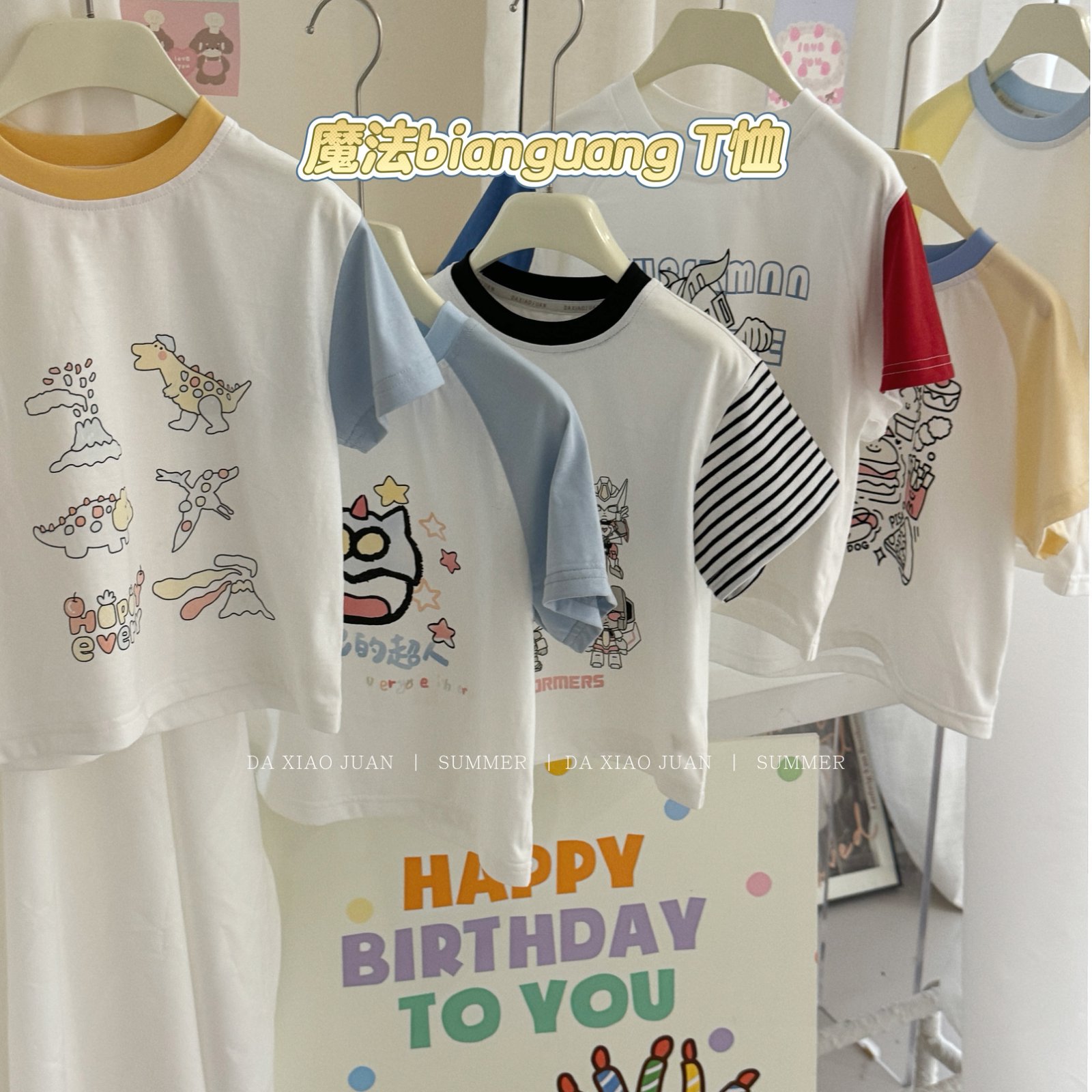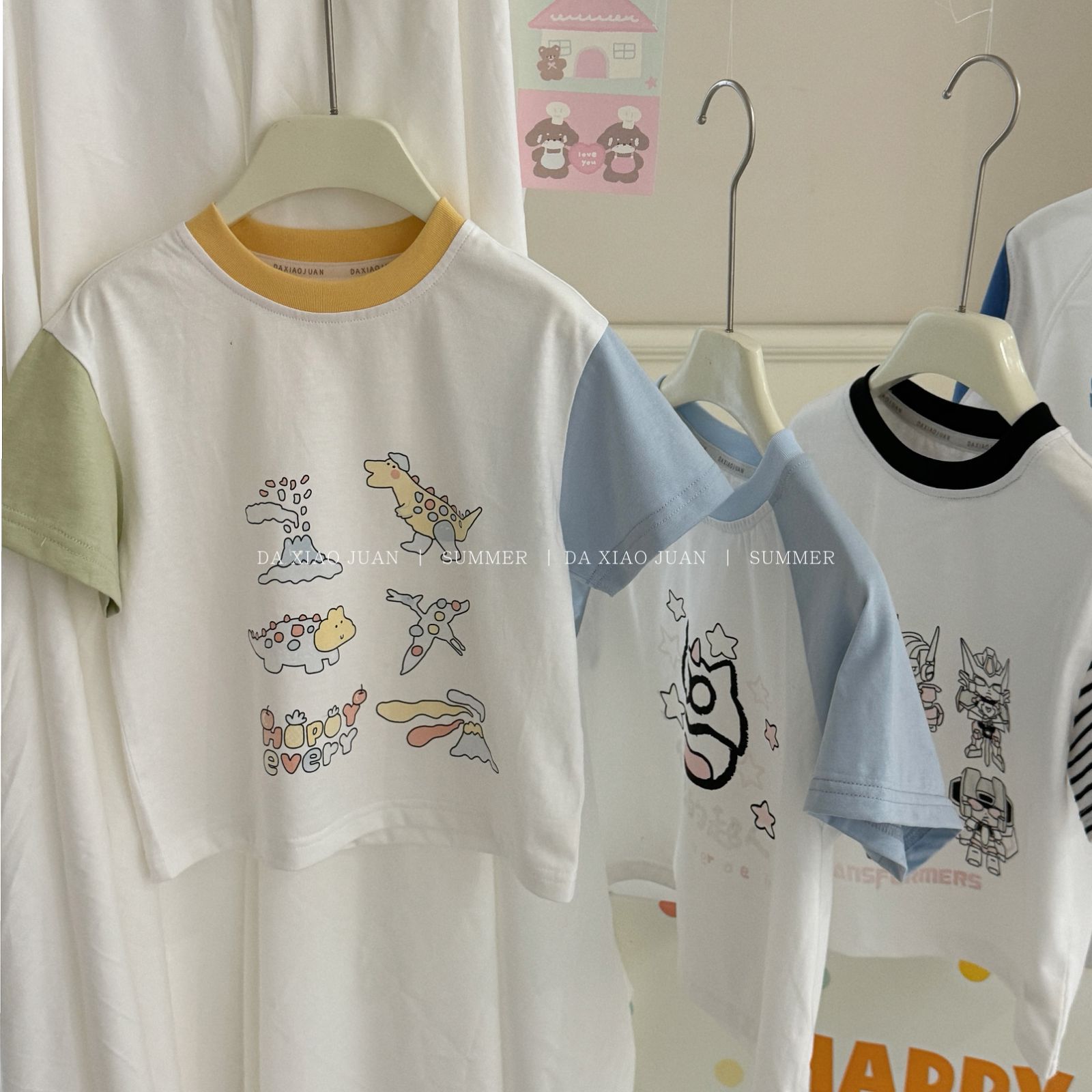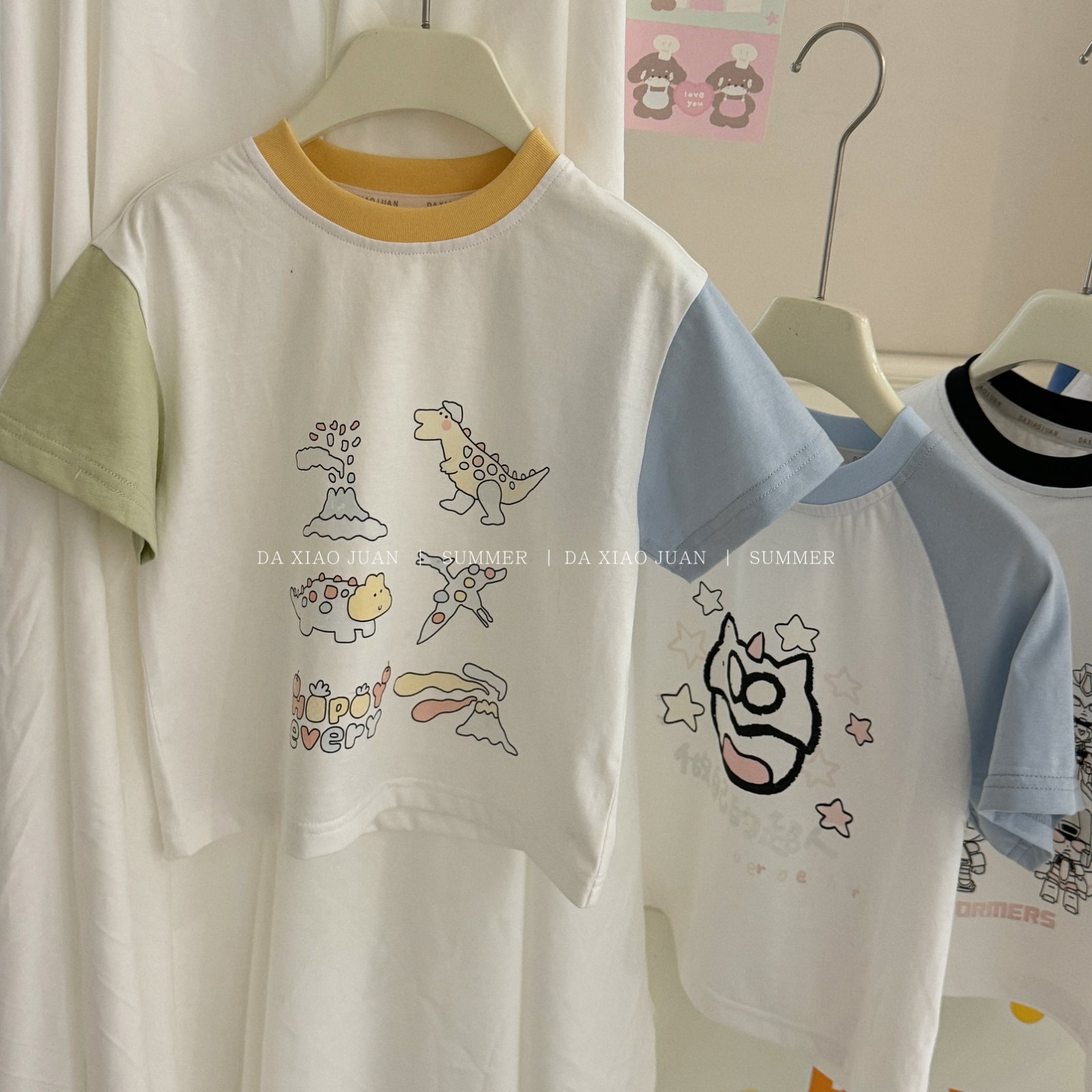 사이즈 롤 25 여름 어린이 재미 반팔 티셔츠 자외선 빛 코튼 스플라이스 슬리브 라운드 넥 탑스토어 가기