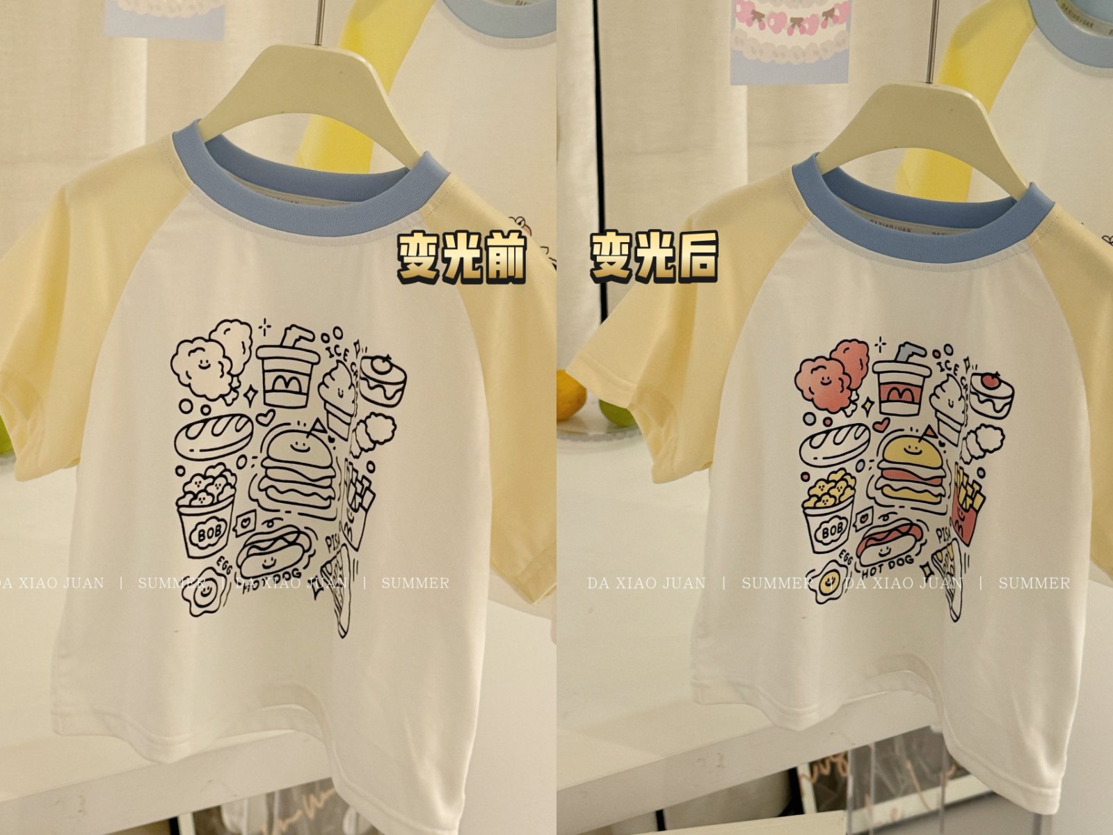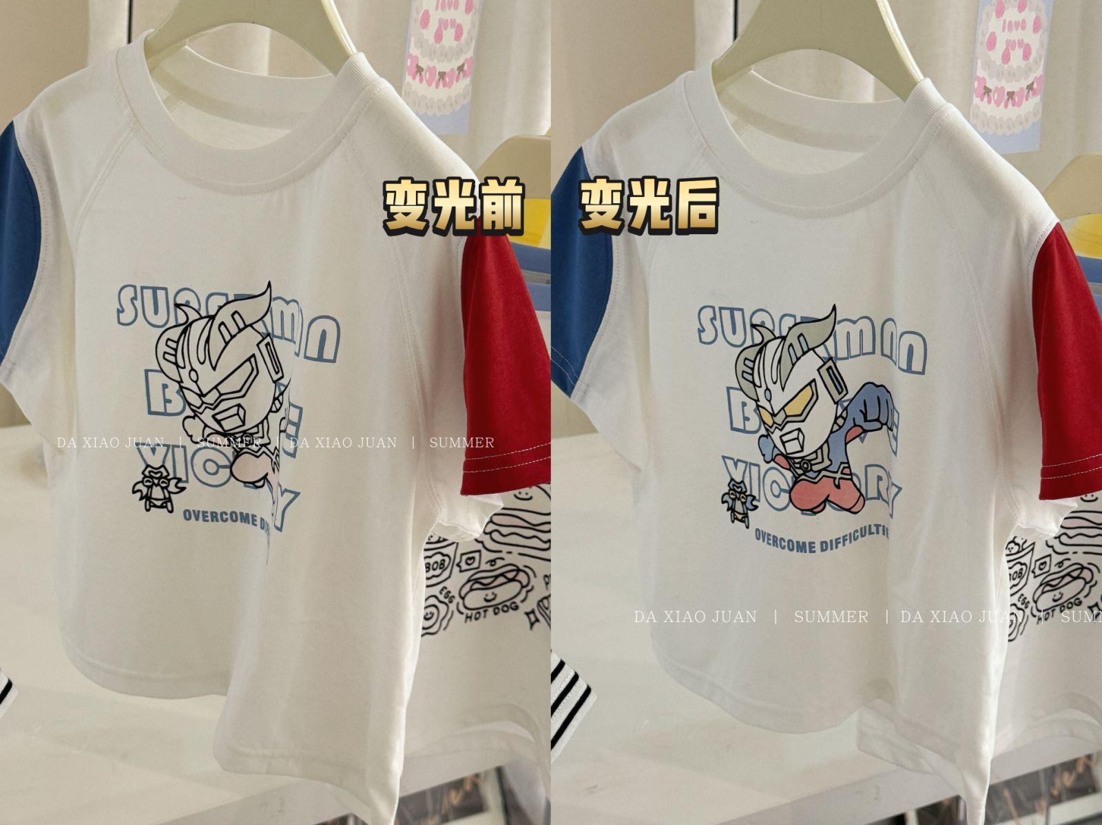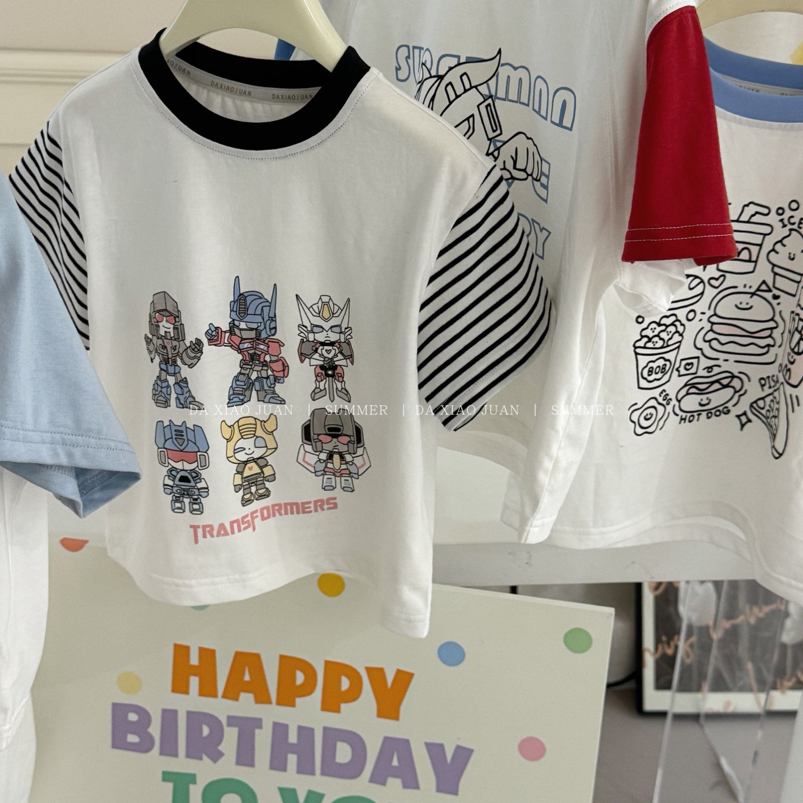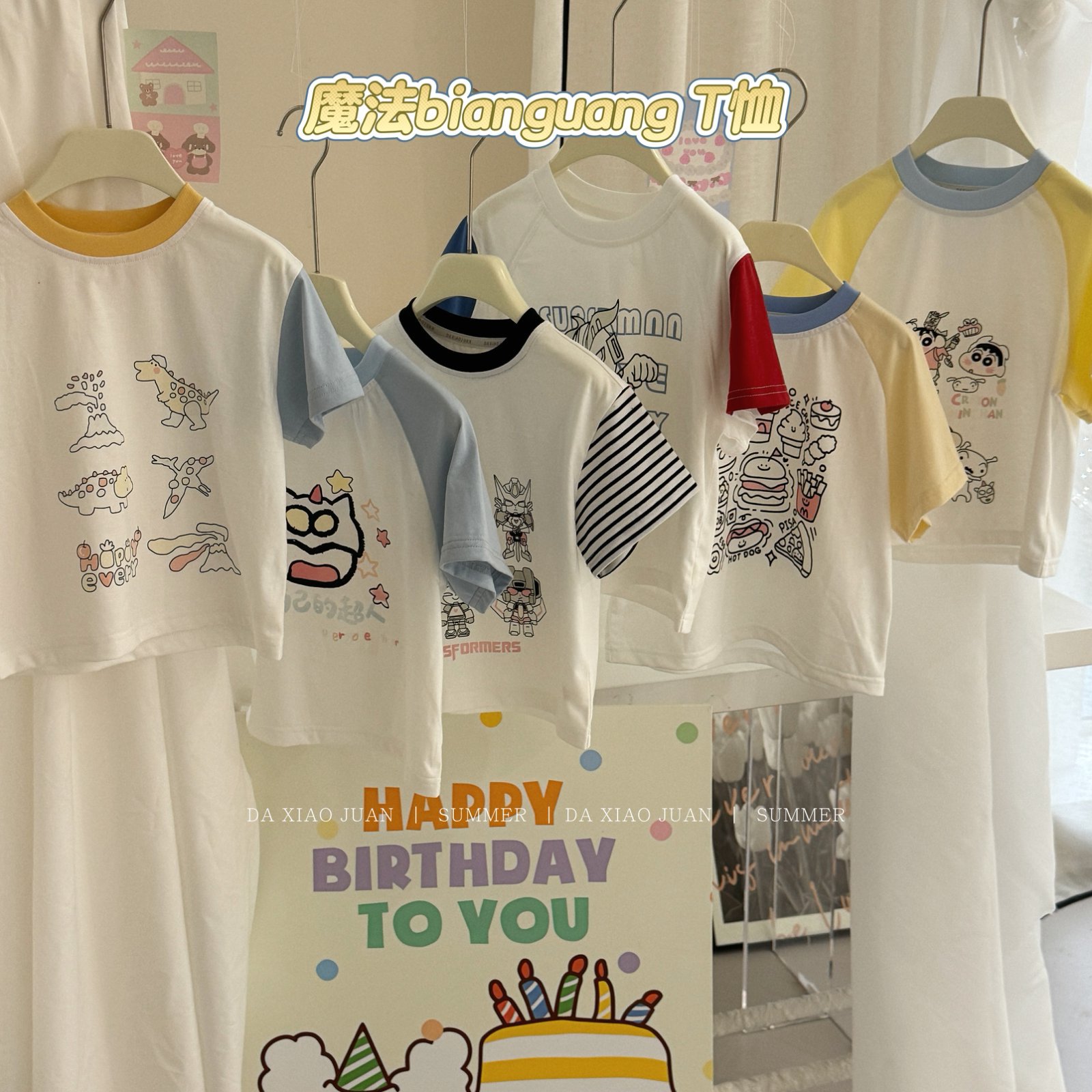 사이즈 롤 25 여름 어린이 재미 반팔 티셔츠 자외선 빛 코튼 스플라이스 슬리브 라운드 넥 탑스토어 가기