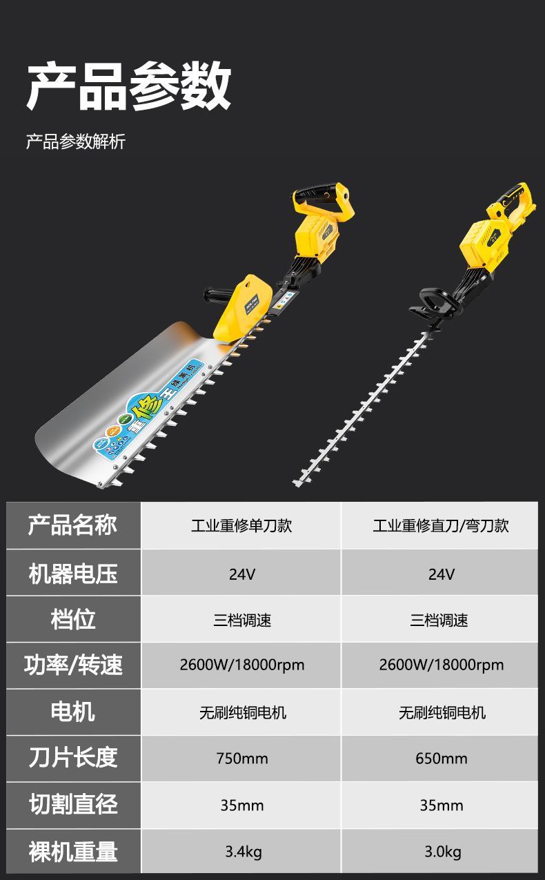 • 브러시리스 전기 울타리 트리머 직선 칼
