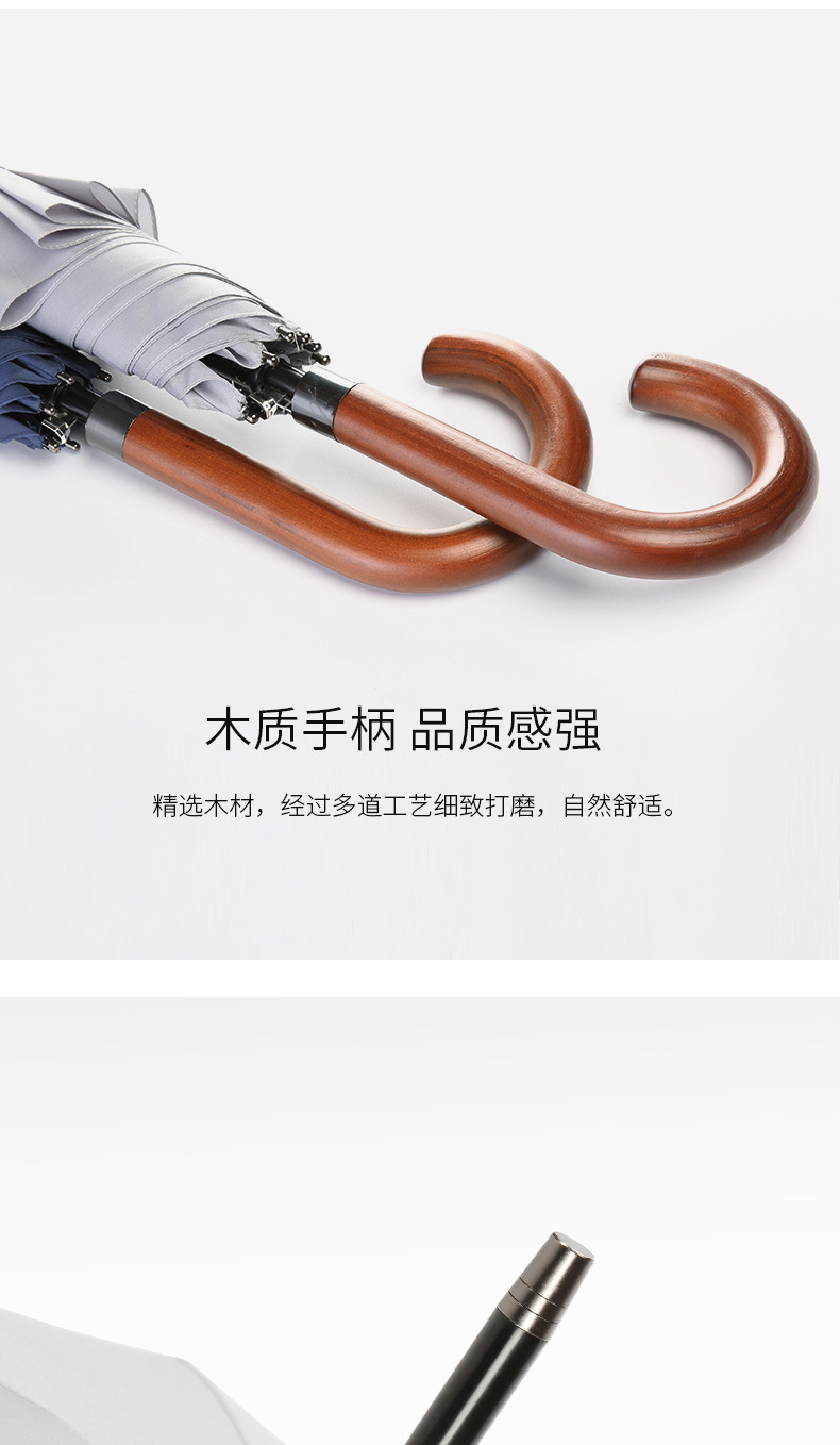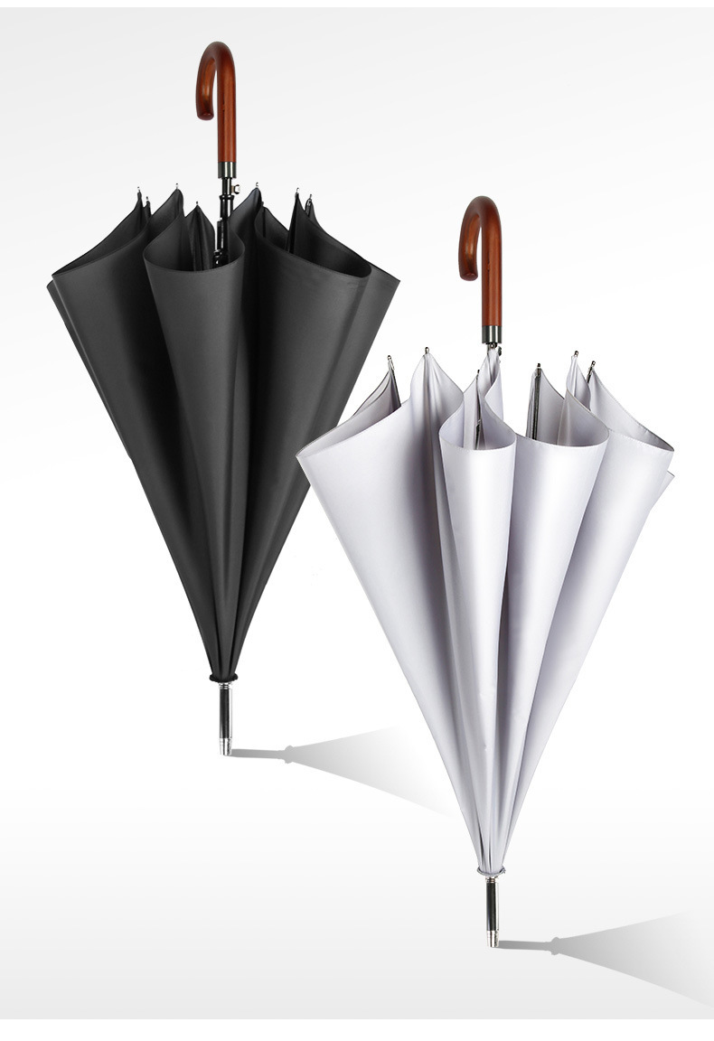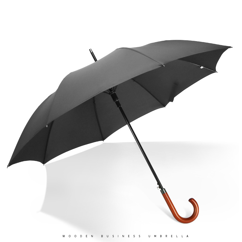 • 8본 원목 곡선형 손잡이(확대된 우산 표면) - 클래식 블랙