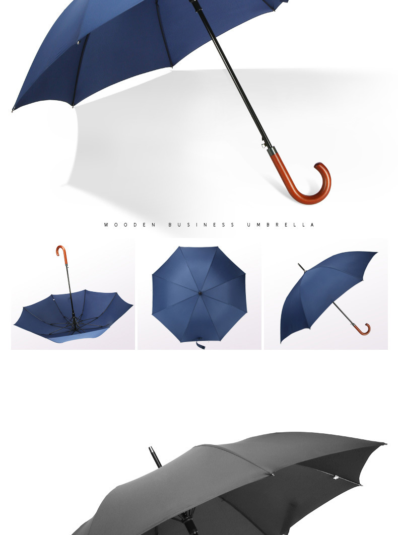 • 8본 원목 곡선형 손잡이(확대된 우산 표면) - 네이비 블루