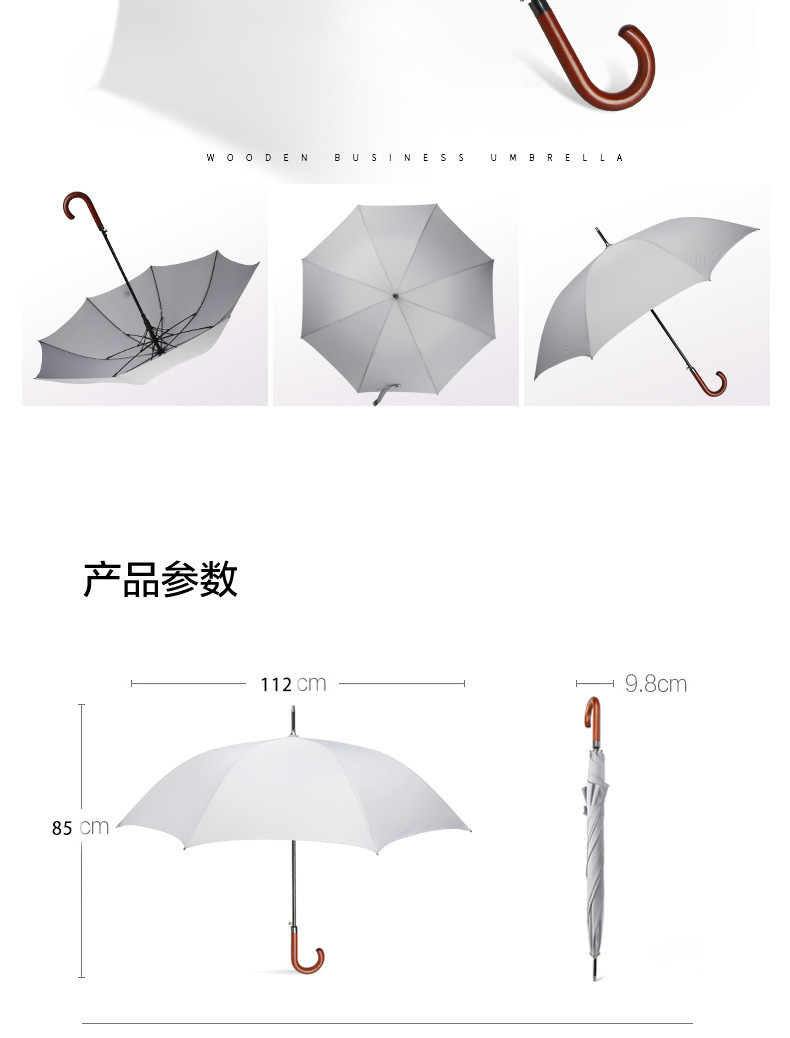 • 8본 원목 곡선 손잡이(확대된 우산 표면) - 밝은 회색