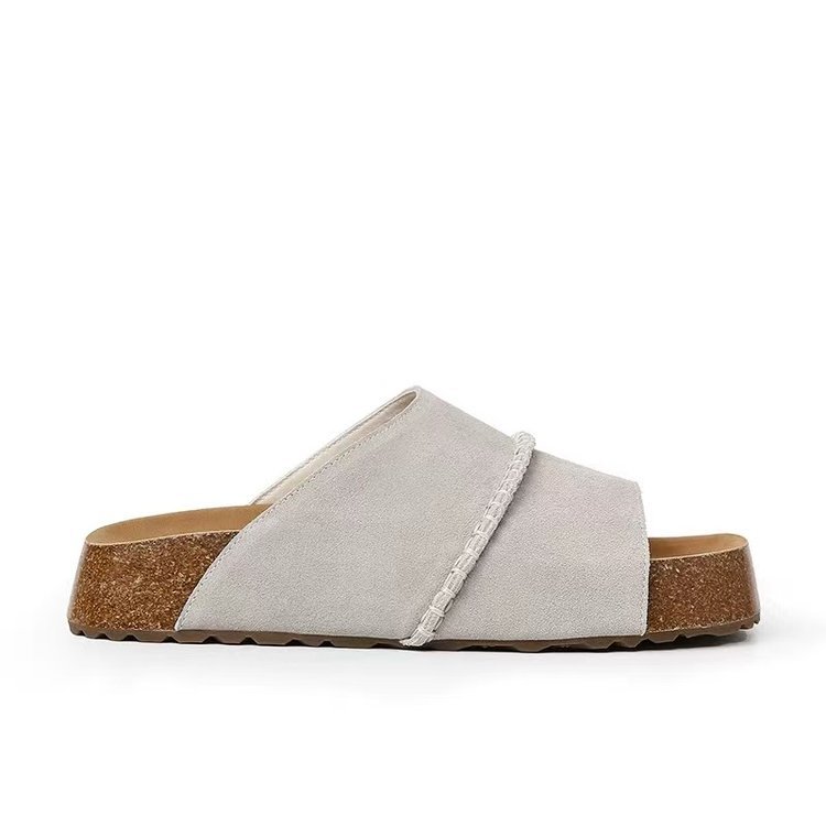 [아마노] 두꺼운 밑창 머핀 한 단어 레트로 캐주얼 버켄 슬리퍼 높이 비치 여성용 샌들 아우터 웨어
