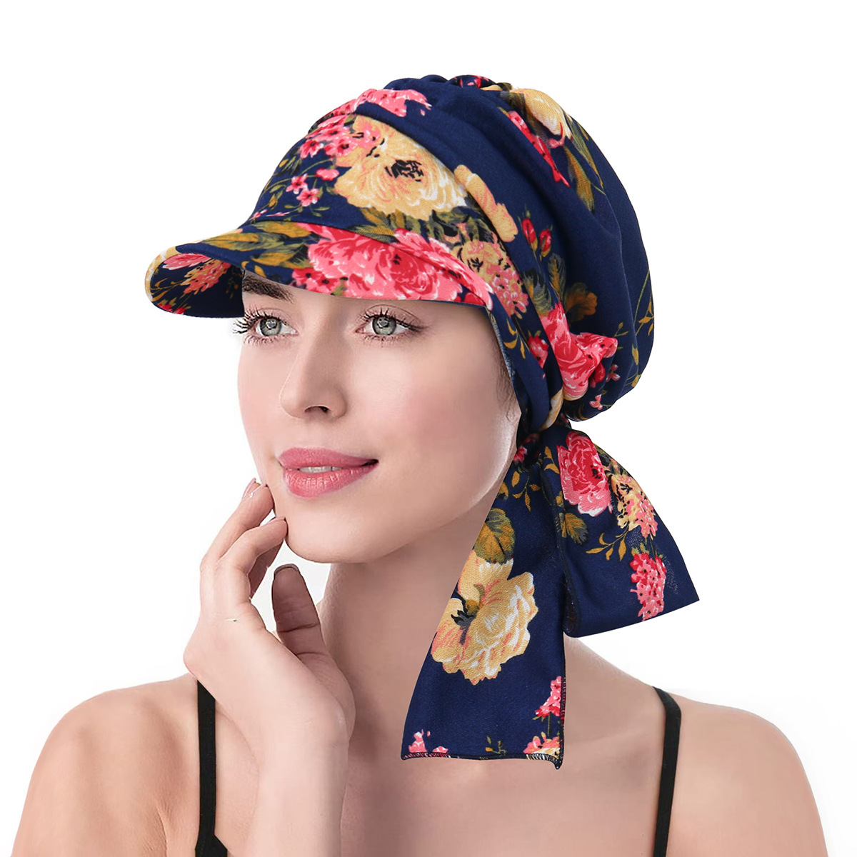 아마존 새로운 레오파드 꽃 천 꽃 모자 브림 헤드 스카프 모자 레이스 업 헤드 스카프 모자 무슬림 숨기기 헤어 가방 헤드 기어