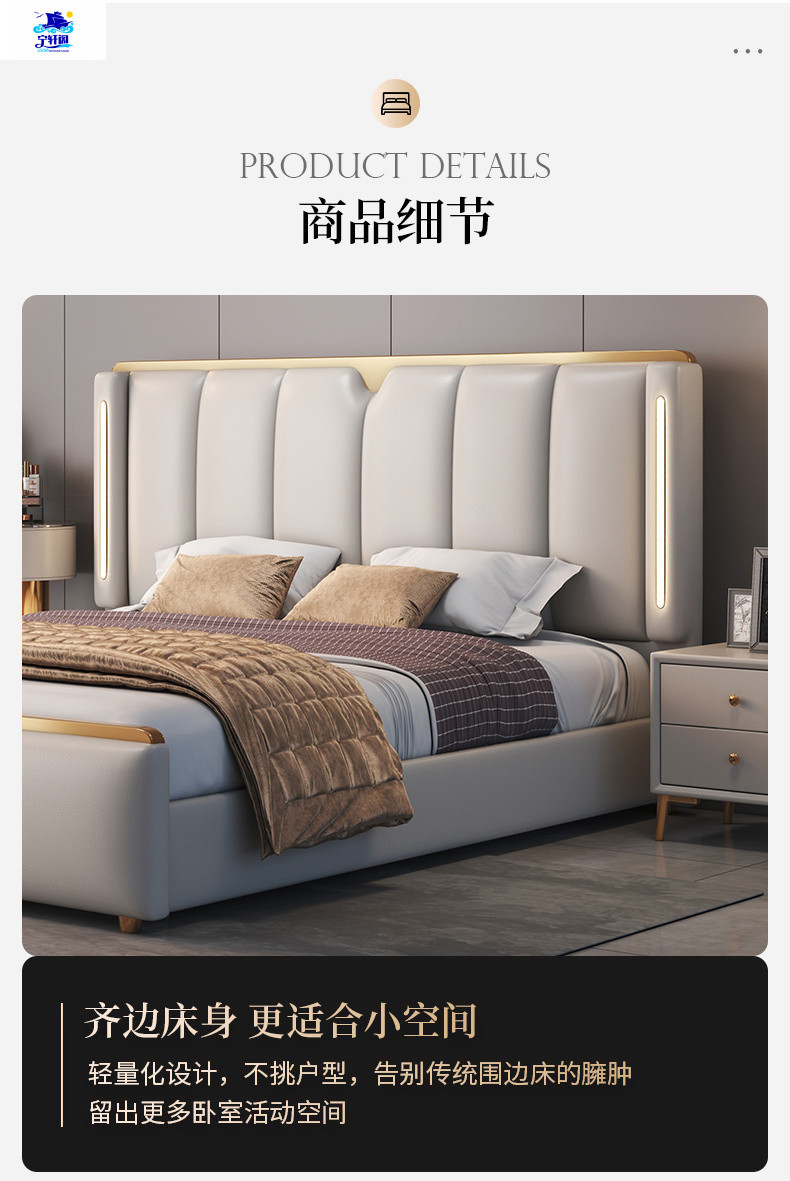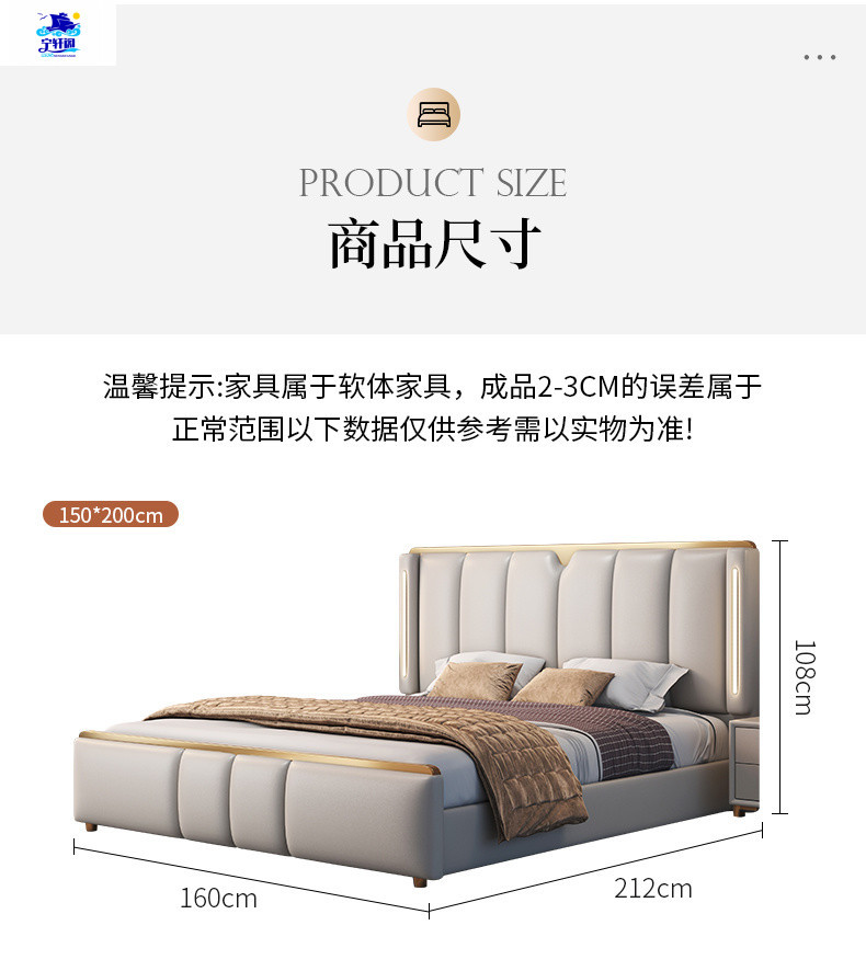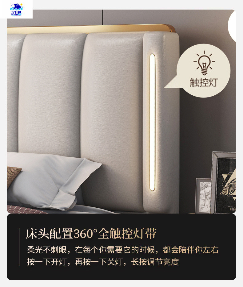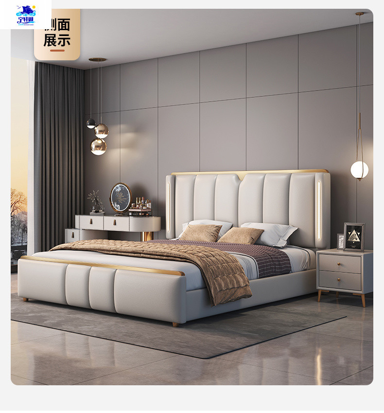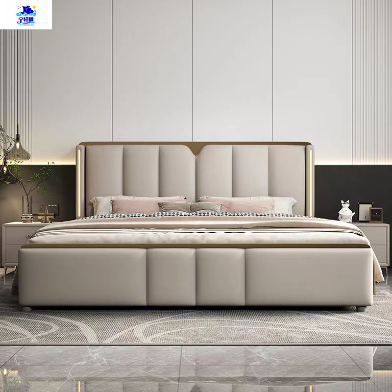 현대 간단한 빛 럭셔리 인터넷 인기있는 이탈리아 가죽 침대 마스터 침실 큰 침대 하이 엔드 가정용 새로운 스타일 2024 침대 웨딩 침대