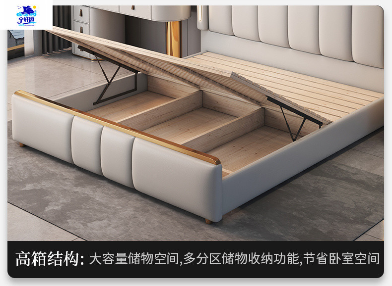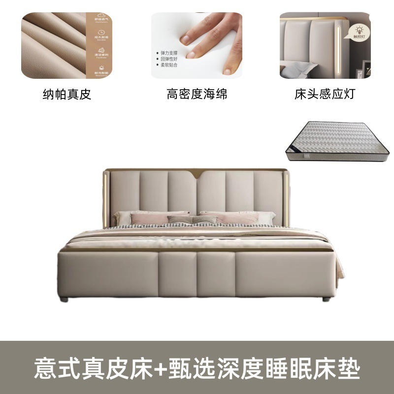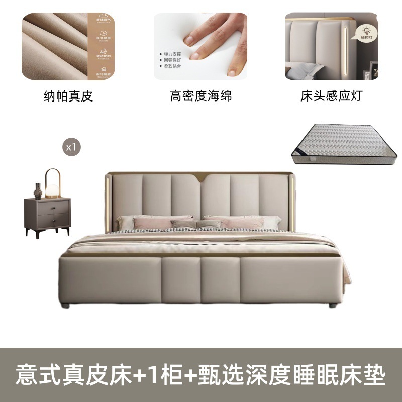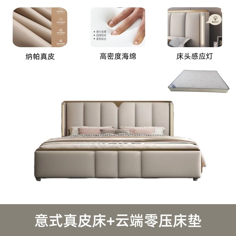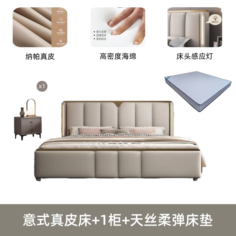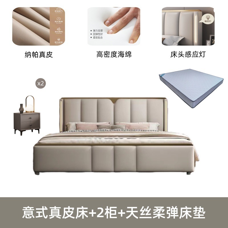 • 이탈리안 가죽 침대 + 캐비닛 2개 + 클라우드 제로 압력 매트리스