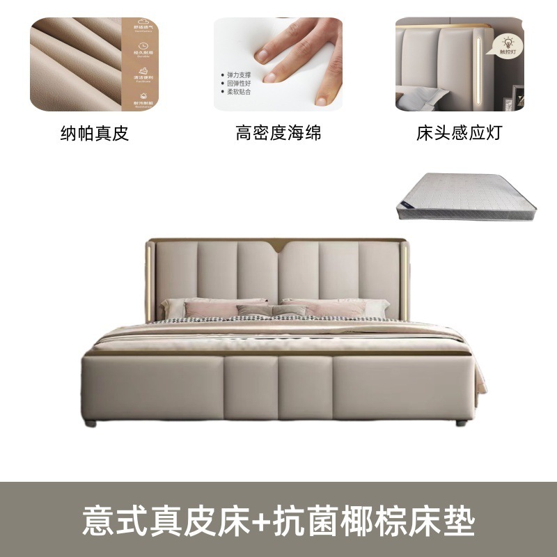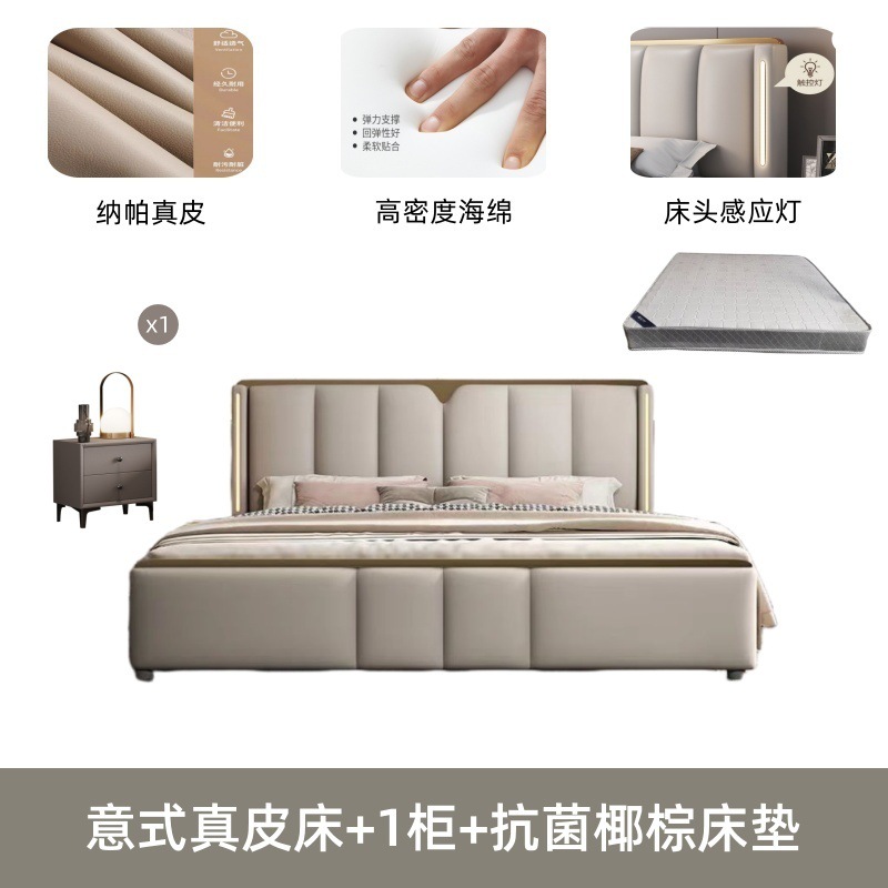 • 이탈리안 가죽 침대 + 수납장 1개 + 항균 코코넛 야자 매트리스