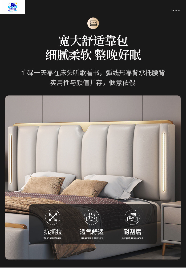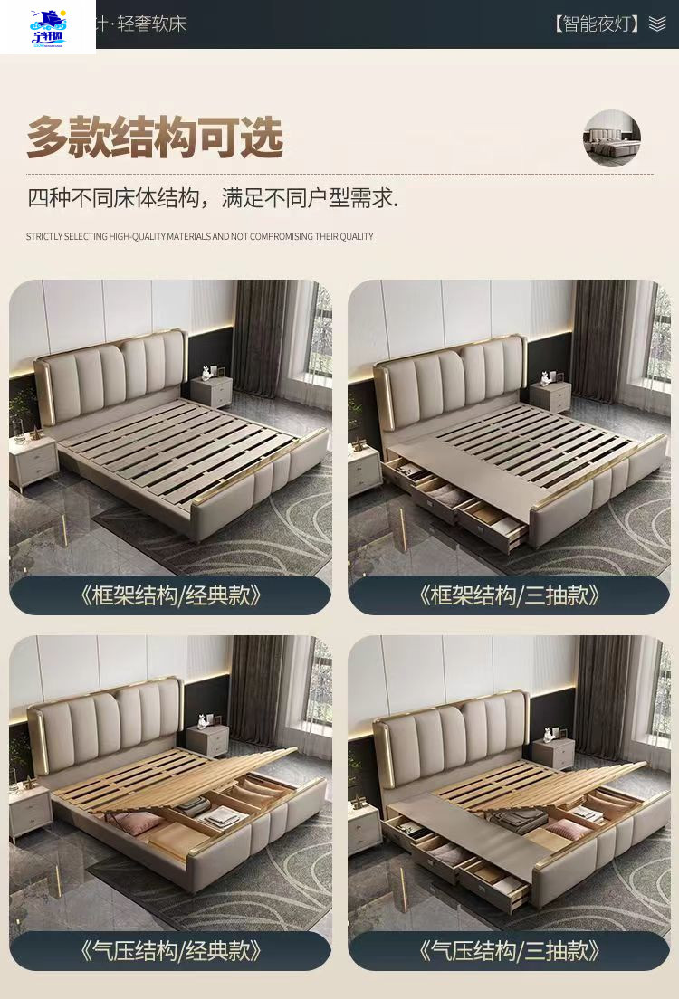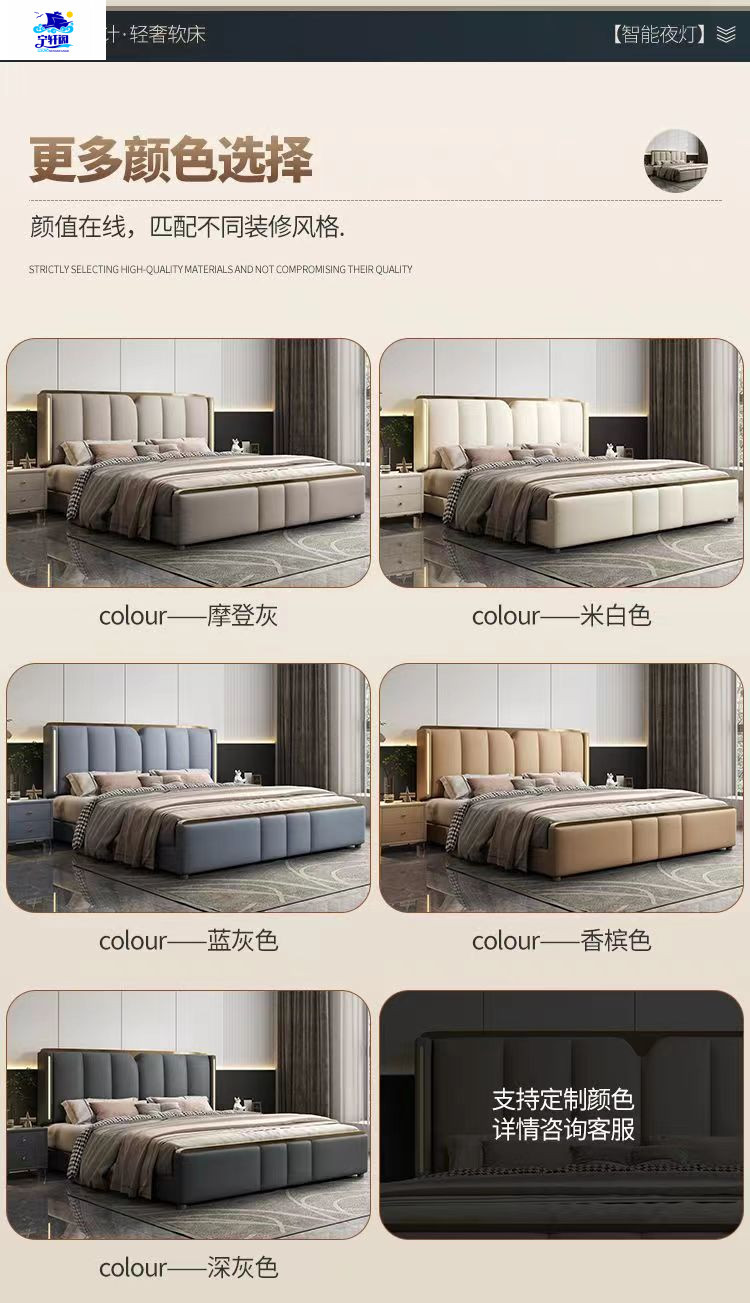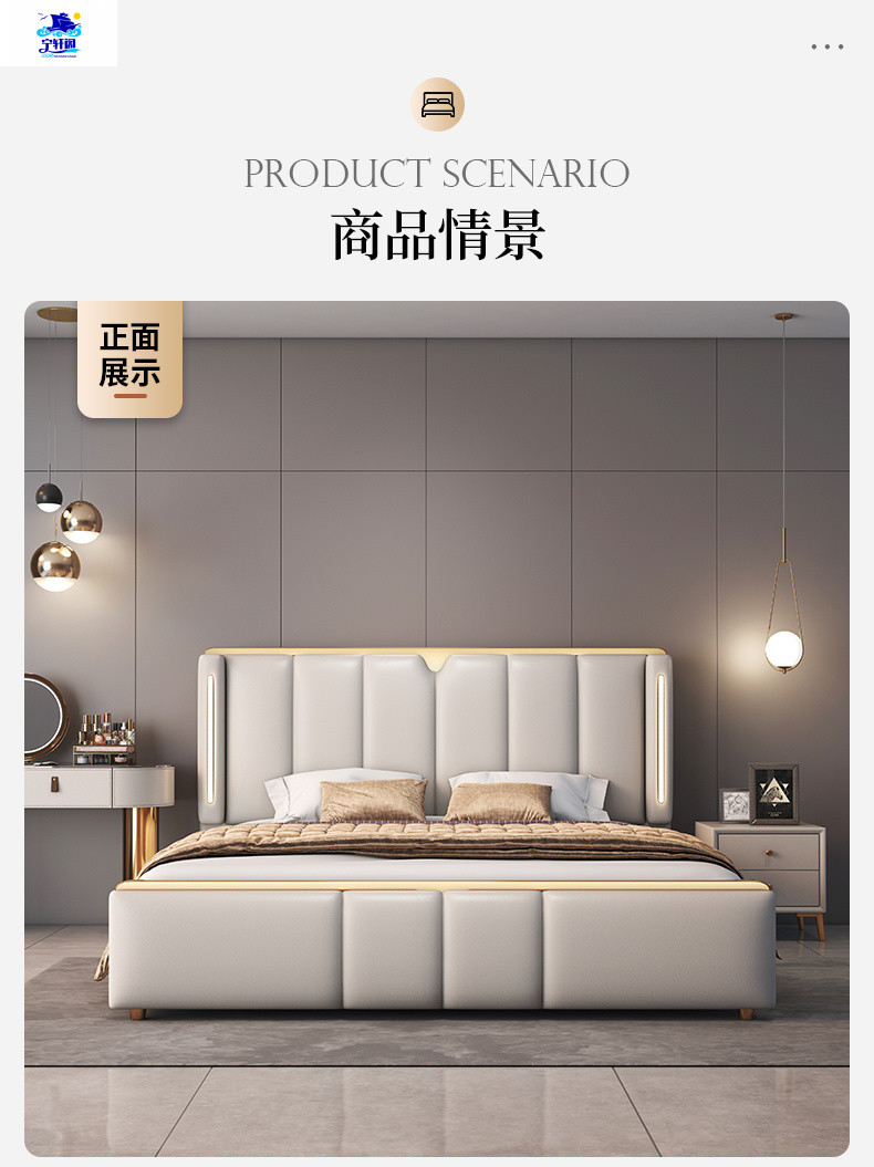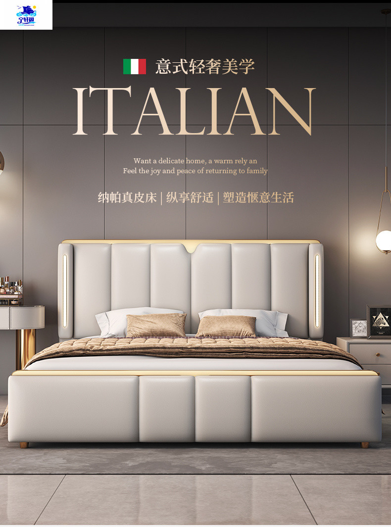 현대 간단한 빛 럭셔리 인터넷 인기있는 이탈리아 가죽 침대 마스터 침실 큰 침대 하이 엔드 가정용 새로운 스타일 2024 침대 웨딩 침대스토어 가기