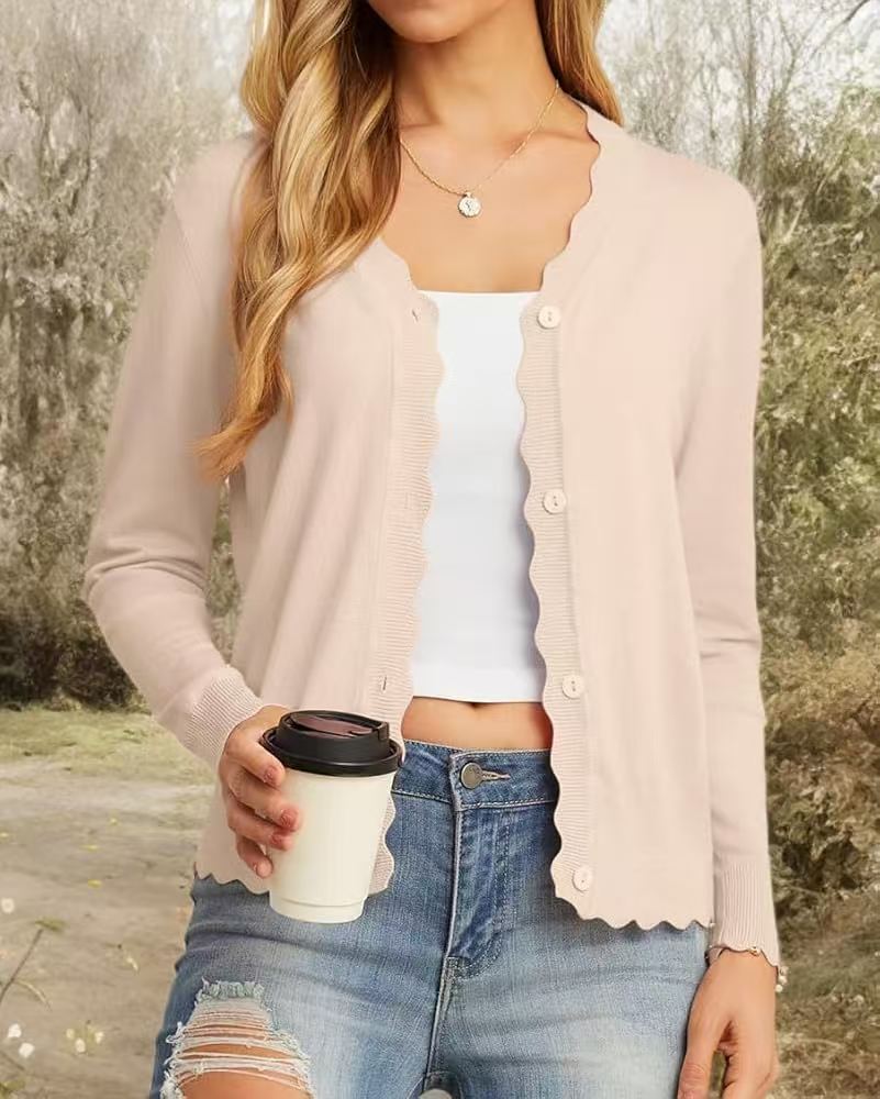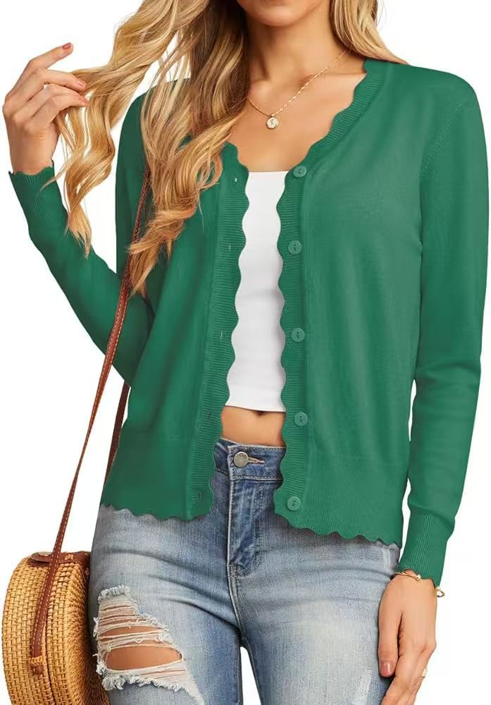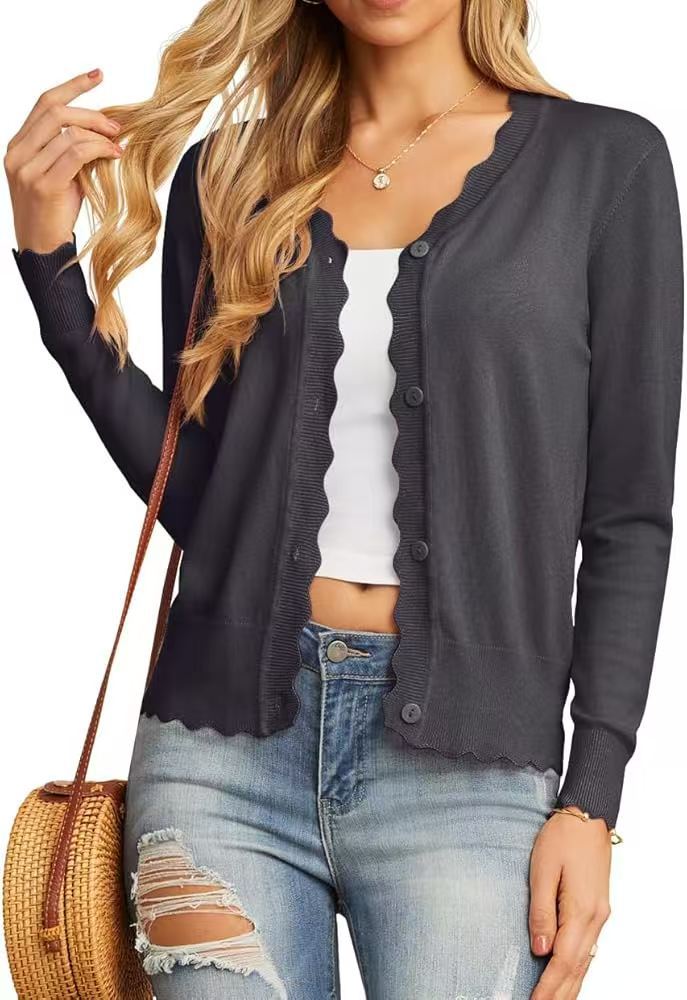 국경 간 아마존 귀 V-넥 9 포인트 소매 얇은 봄과 여름 최고의 새로운 패션 짧은 니트 카디건 여성스토어 가기