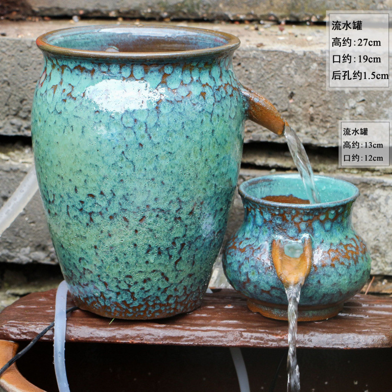 대형 세라믹 냄비 물 생태 물고기 사육 물 흡입 펌프 레트로 수경 유역 어항 장식품 가정용 간단한 거실