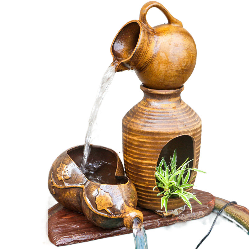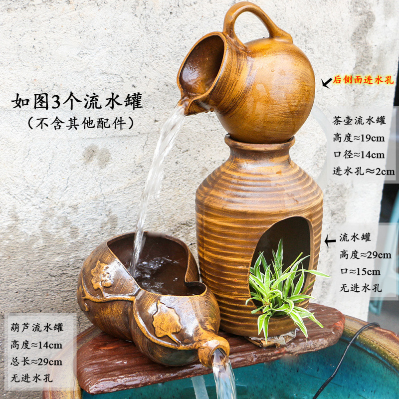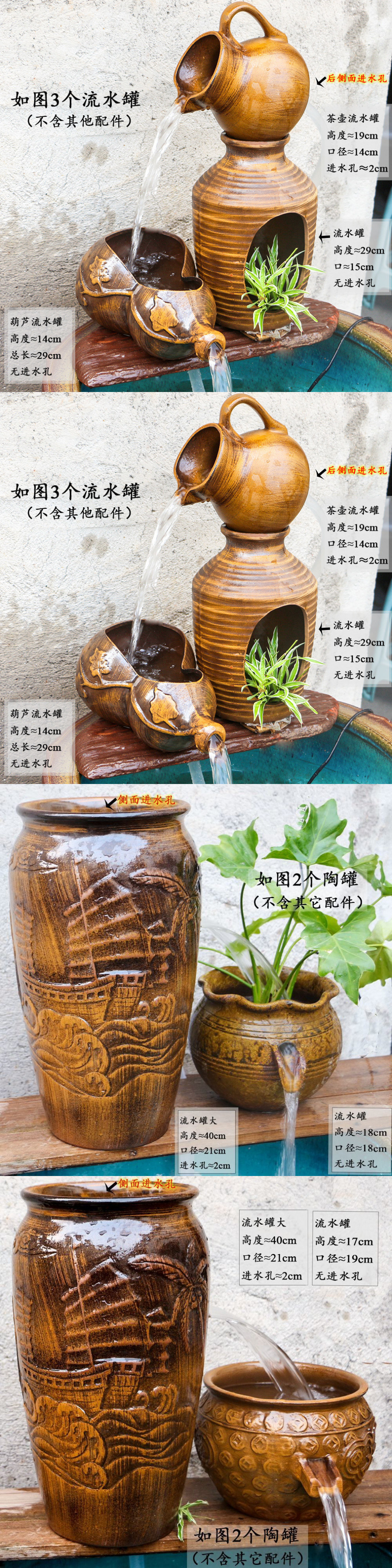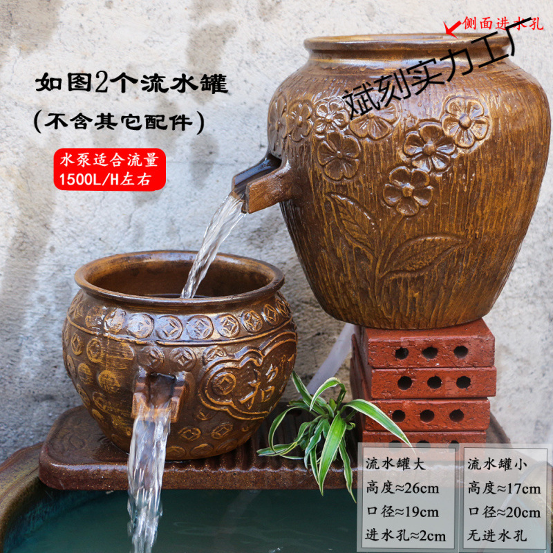 대형 세라믹 냄비 물 생태 물고기 사육 물 흡입 펌프 레트로 수경 유역 어항 장식품 가정용 간단한 거실스토어 가기