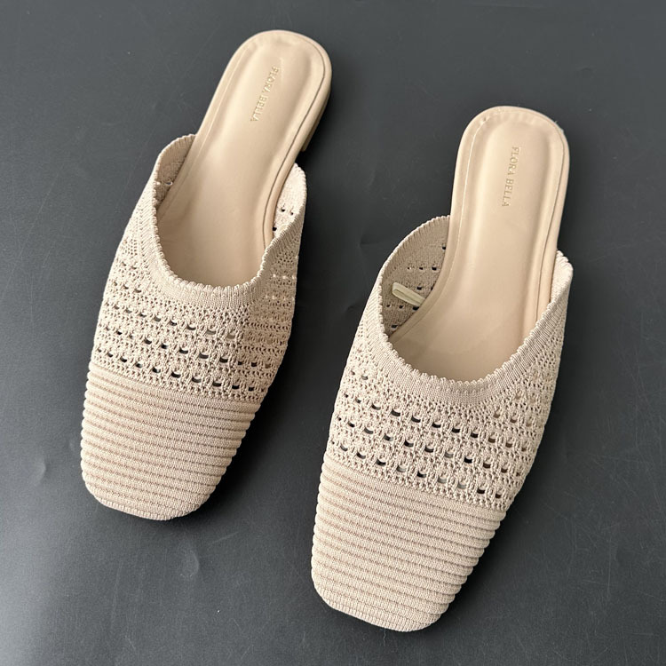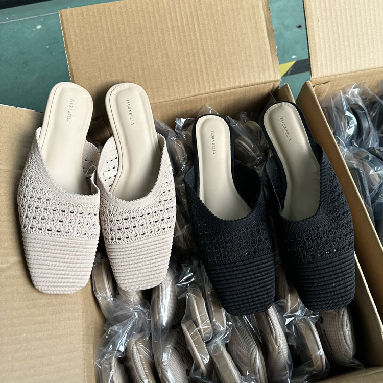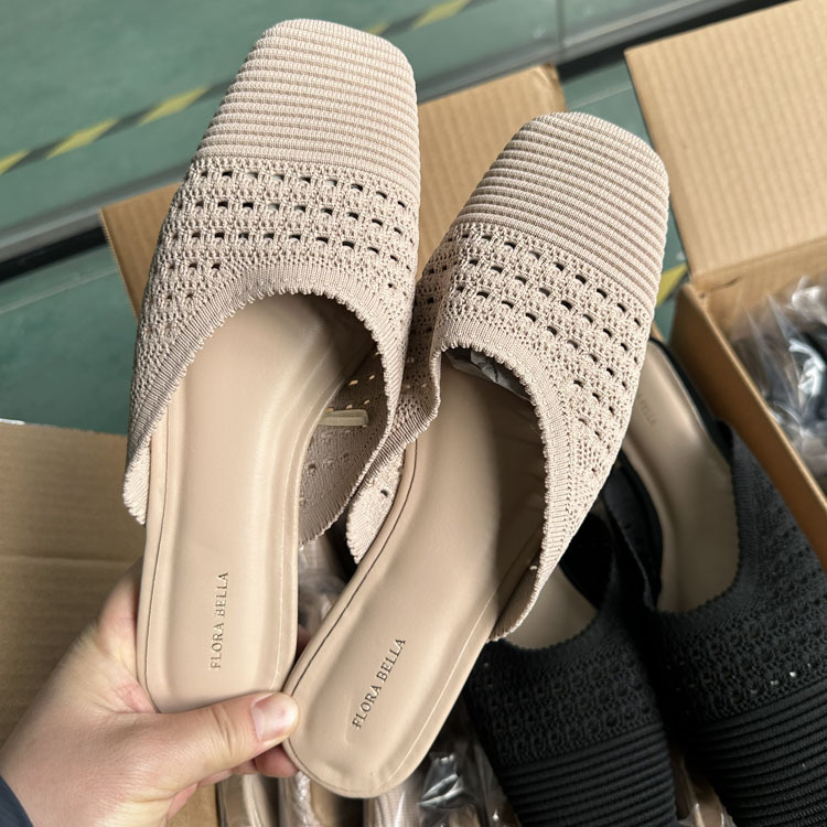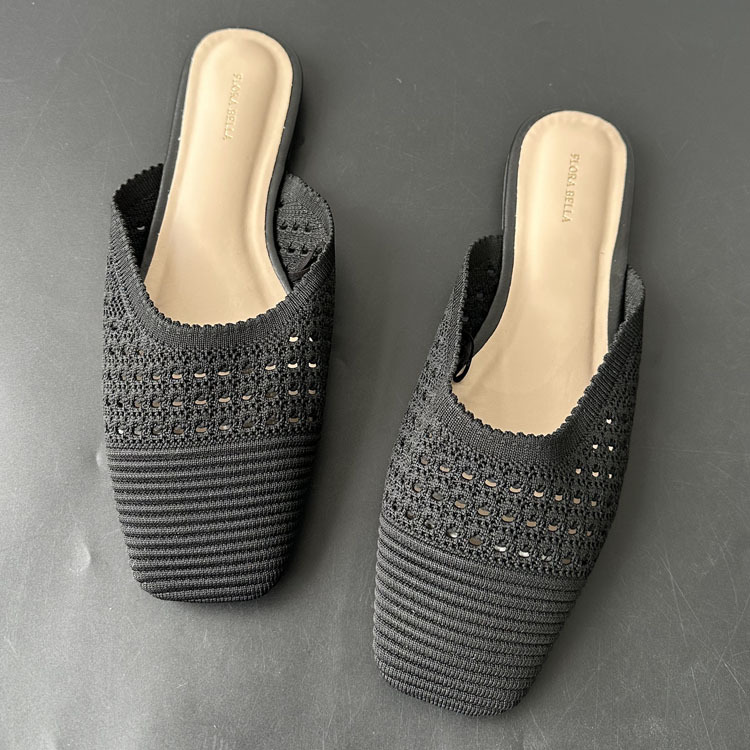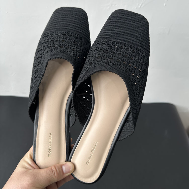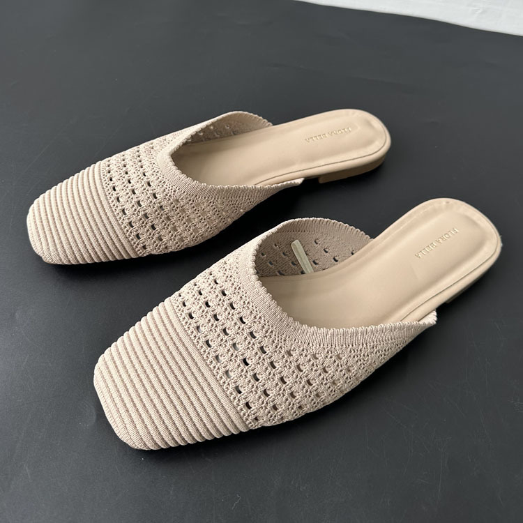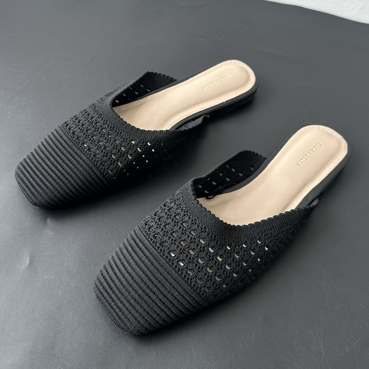 2025 년 여름 새로운 플러스 사이즈 플라이 짠 바오터우 반 슬리퍼 헤드 얕은 입 통기성 플러스 사이즈 여성 신발 대외 무역 도매스토어 가기