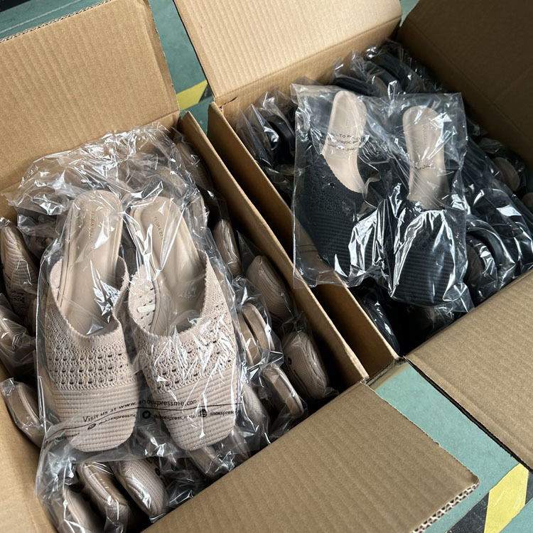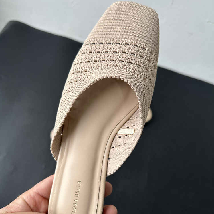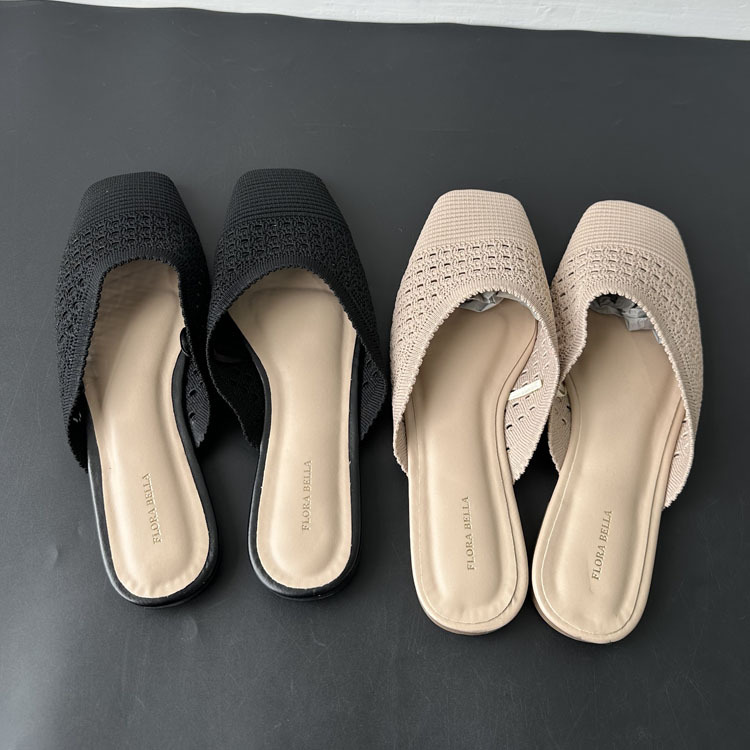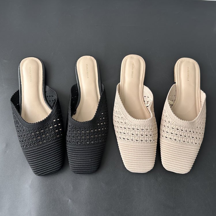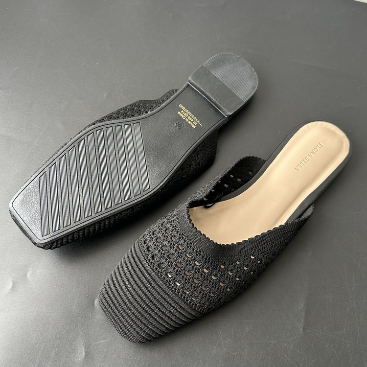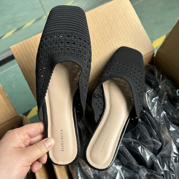2025 년 여름 새로운 플러스 사이즈 플라이 짠 바오터우 반 슬리퍼 헤드 얕은 입 통기성 플러스 사이즈 여성 신발 대외 무역 도매