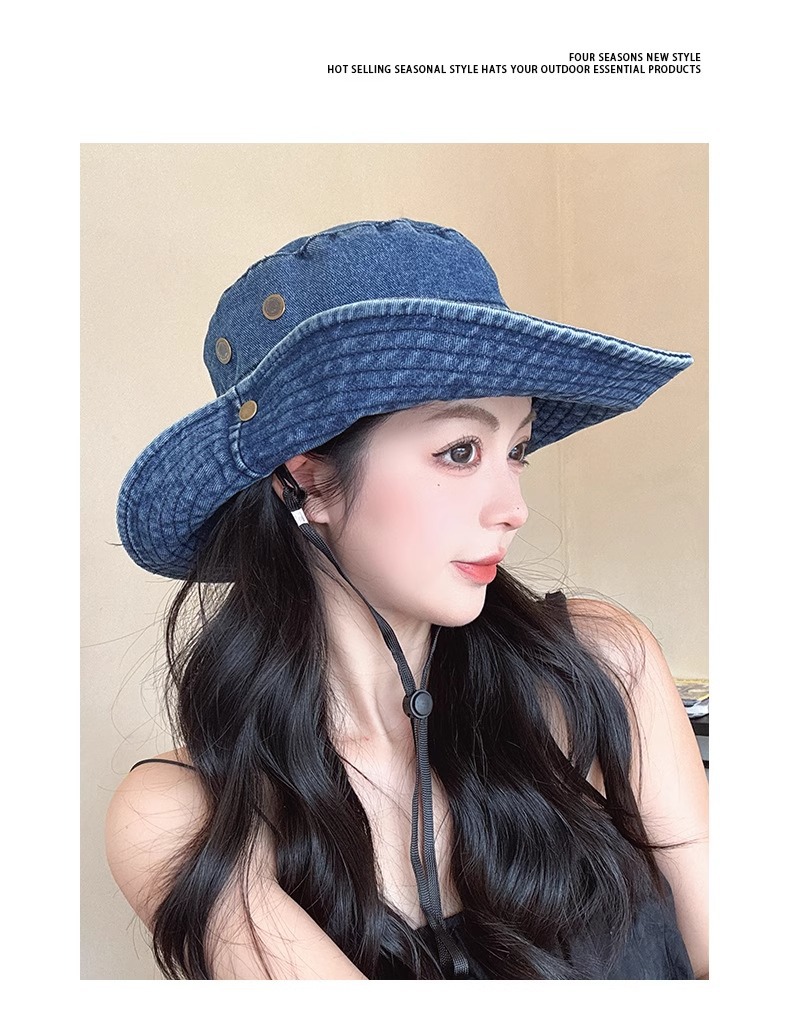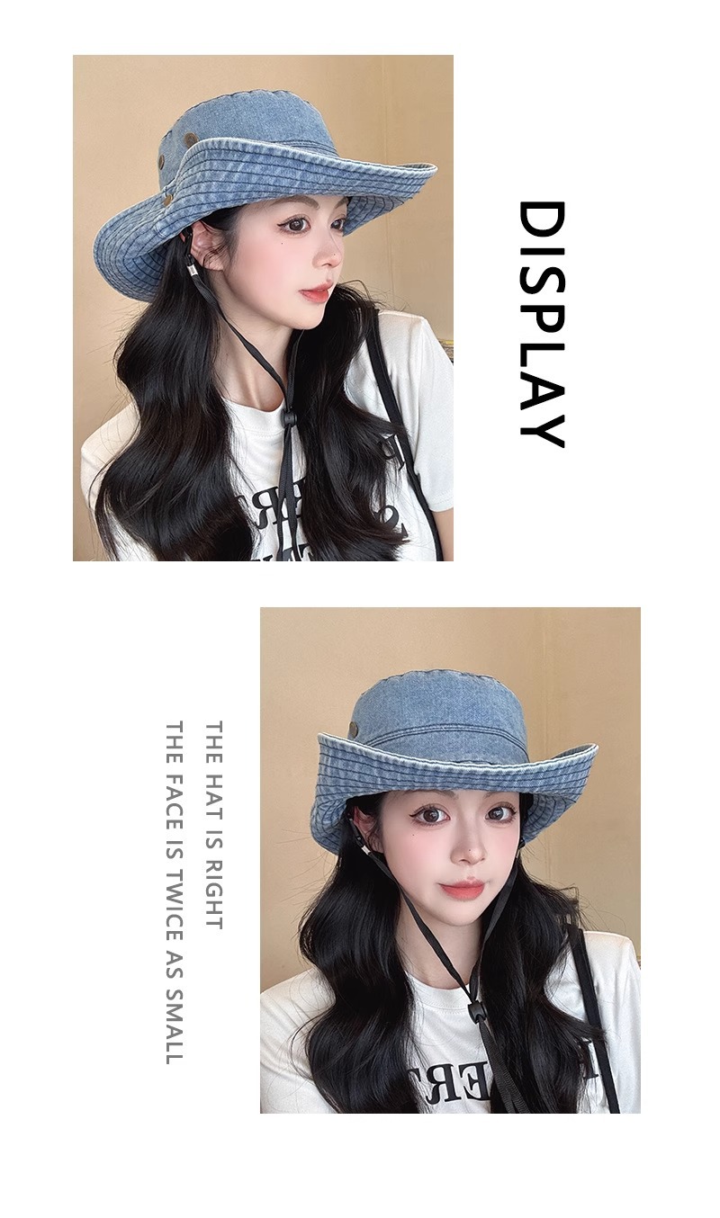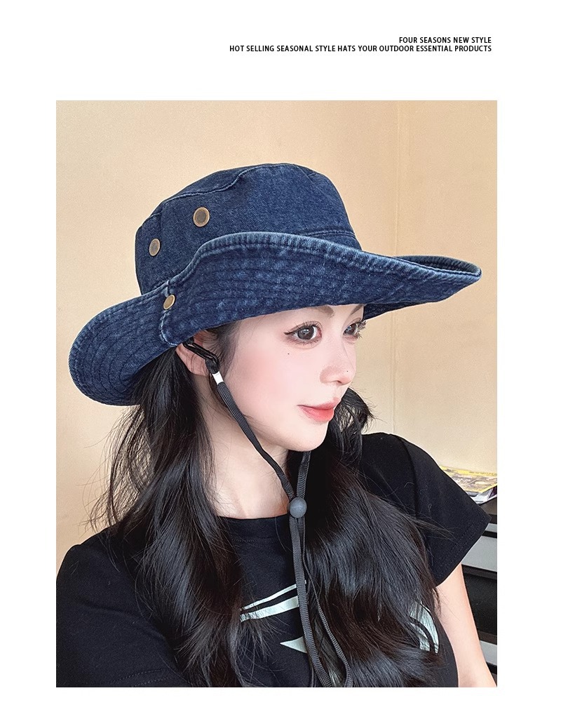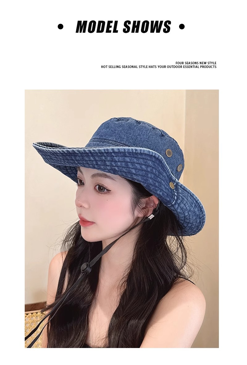 새로운 한국식 모자 씻은 야외 등산 서양 데님 어부 모자 캠핑 패션 캐주얼 햇살