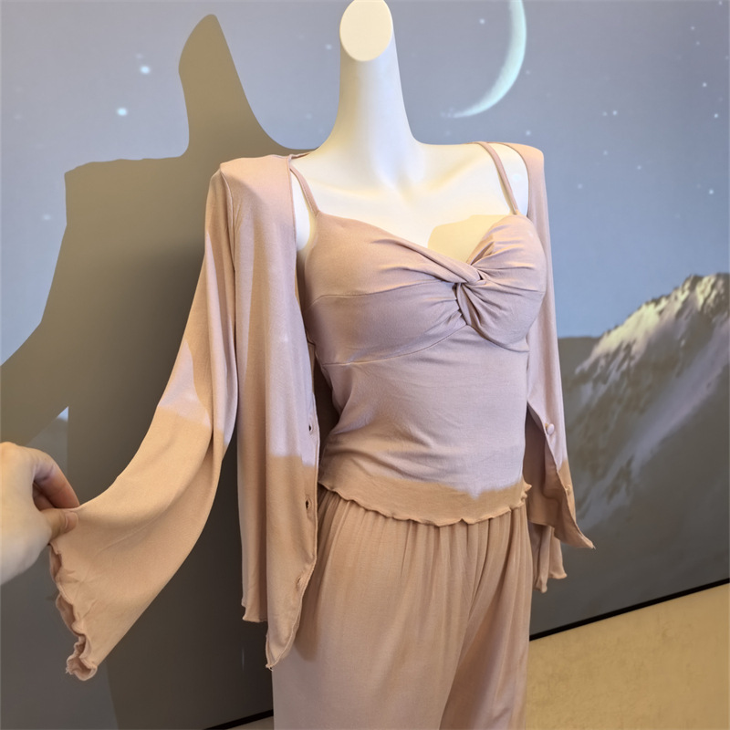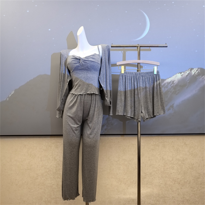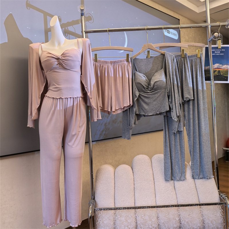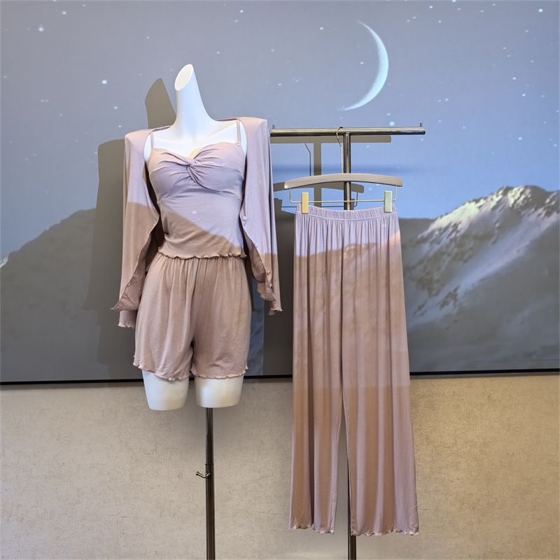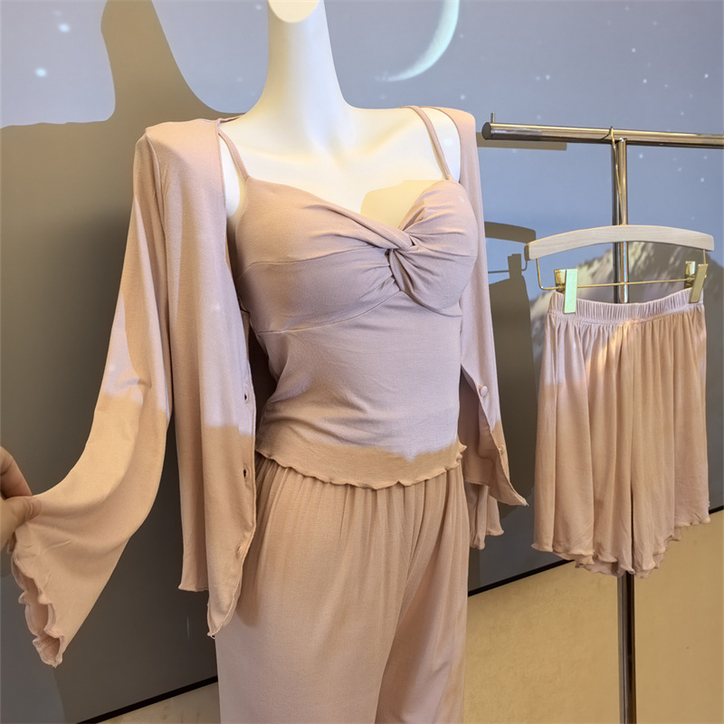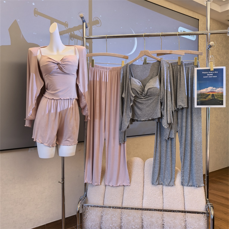 여성스러운 스타일의 파자마, 모달 4종 세트, 여성용 서스펜더 반바지, 봄 여름 시원한 긴팔 바지, 홈웨어, 달콤함