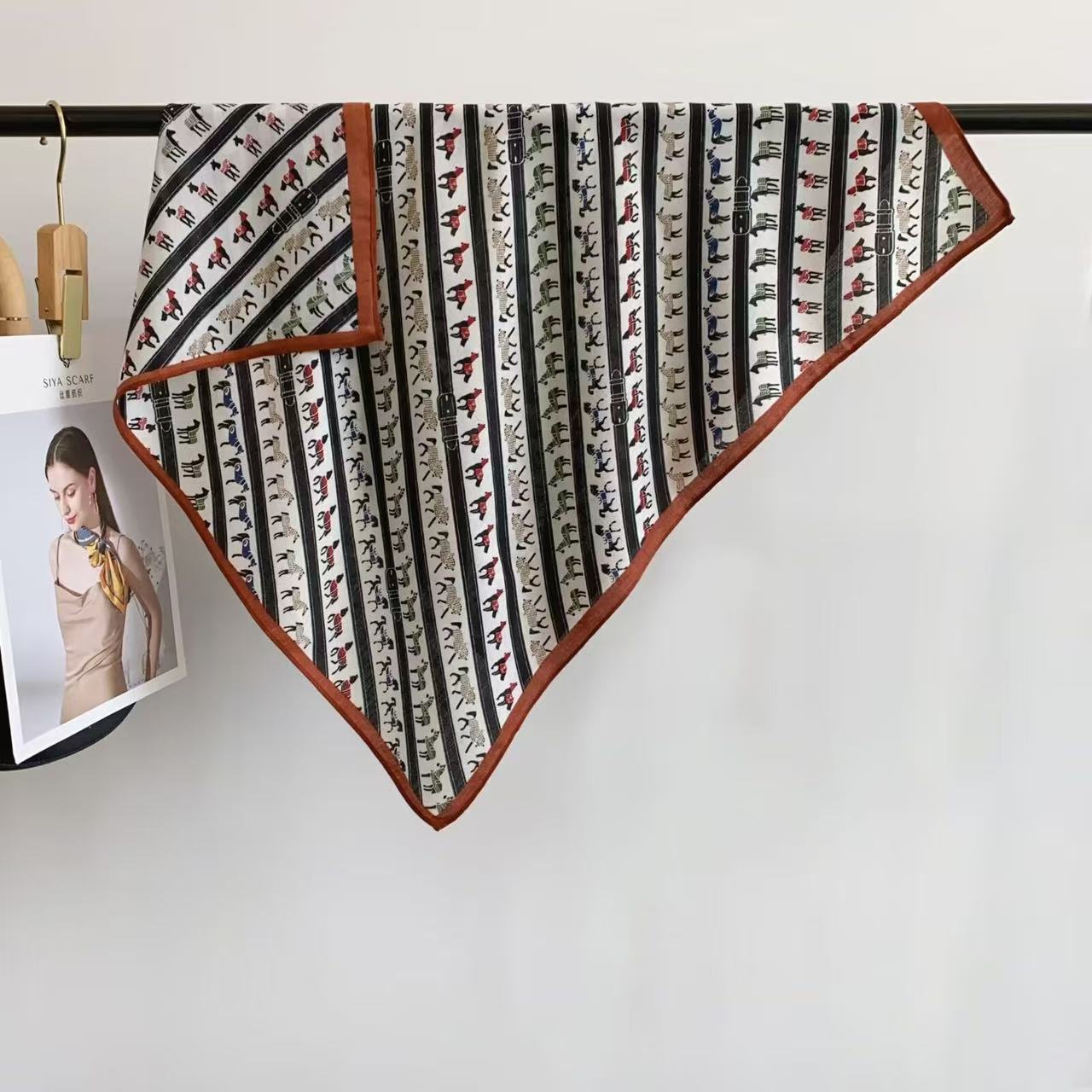 • 65 면과 린넨 스퀘어 스카프 시퀀스 캐리지-오렌지 엣지