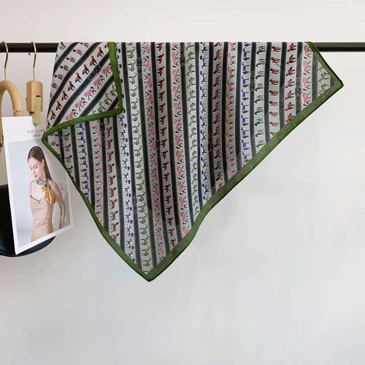 • 65 면과 린넨 사각 스카프 시퀀스 캐리지 - 짙은 녹색 가장자리