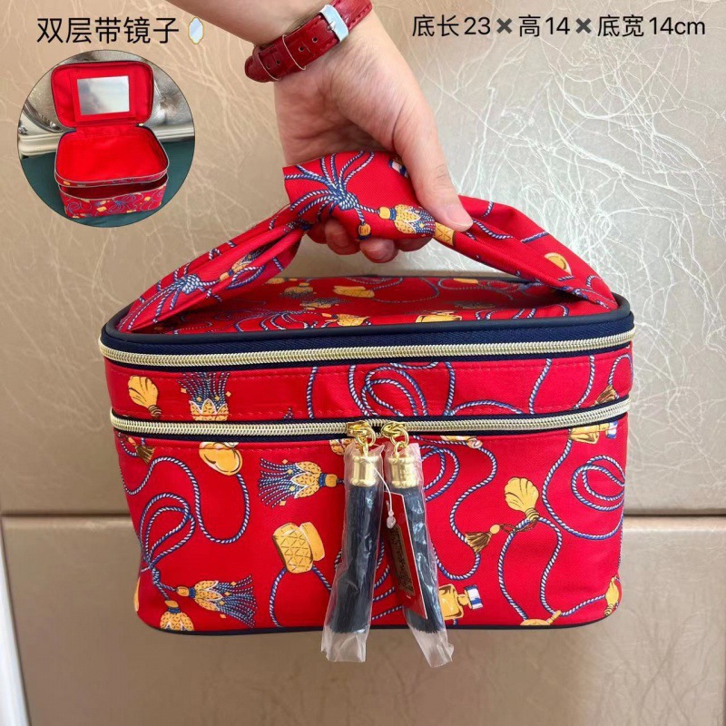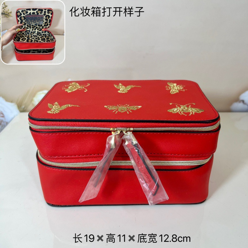 • 붉은 꿀벌 자수 더블 레이어 화장품 케이스