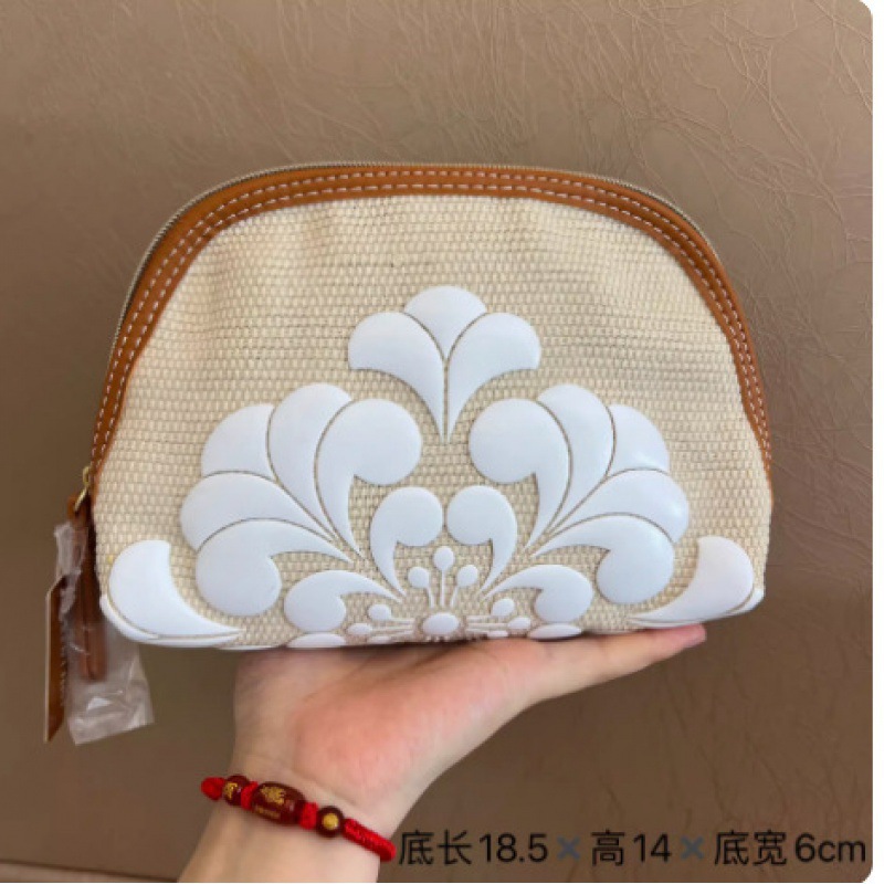 • 미색 짚으로 짠 심플한 수납 세면도구 가방