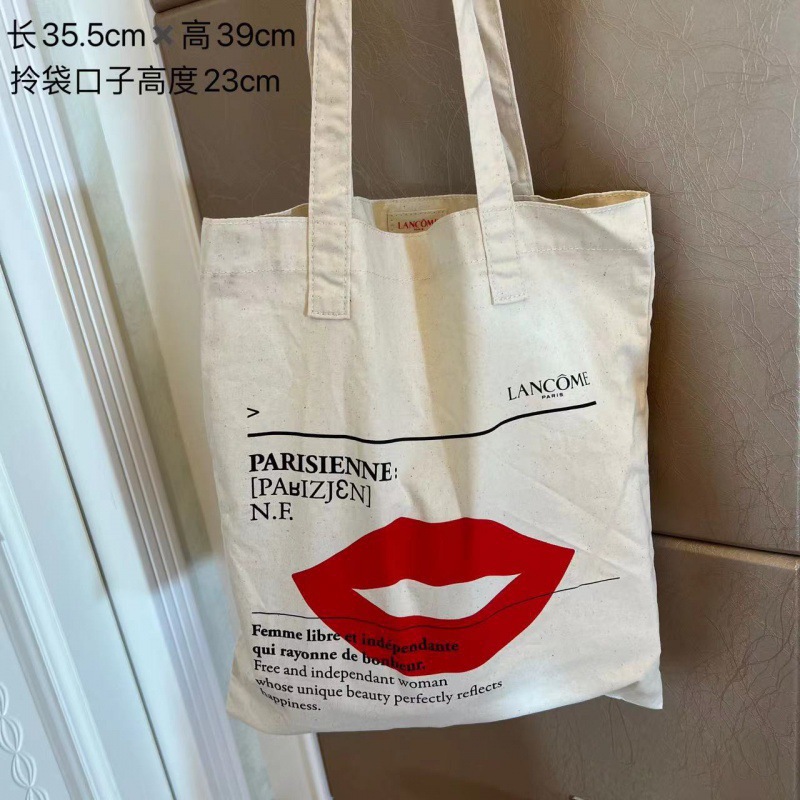 • 레드 립 프린트 베이지 캔버스 가방 수납 가방