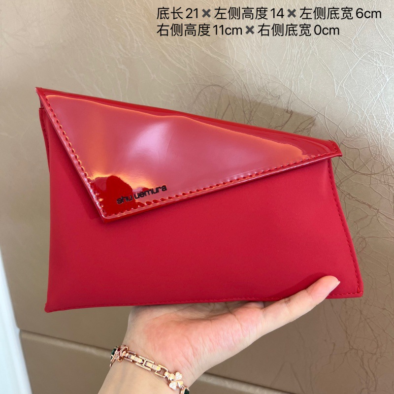 • 큰 빨간색 이중 플립 핸드 화장품 케이스